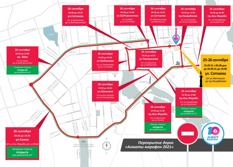 2021 жылғы Алматы марафонына жолдарды жабу кестесі (25.09.2021-26.09.2021)