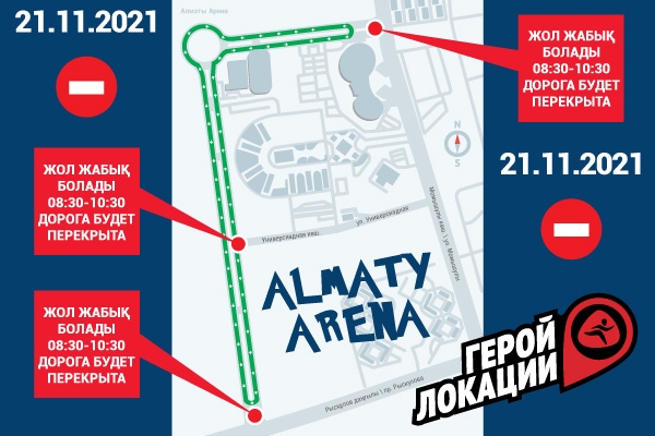 «Нұркент» шағын ауданы көшелерінің бір бөлігі «Almaty Arena» автотұрағы жақтан жабық болады, сондай-ақ «Атлетикалық ауылы» тұрғын үй кешені жағынан жабылады. Тұрғын үй кешенінің ауласына көлікпен жету қиын болуы мүмкін.