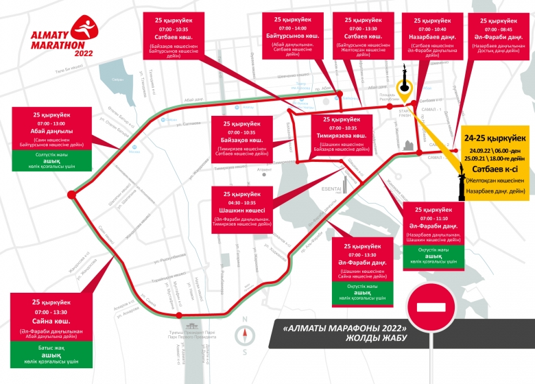2022 жылғы «Алматы марафоны» (24.09.2022-25.09.2022) үшін жолдарды жабу кестесі