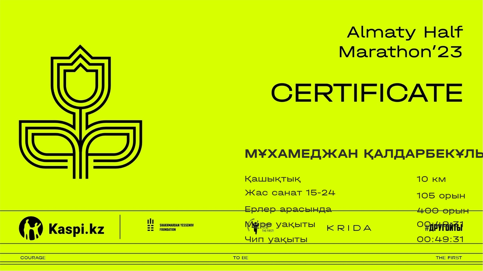| 3023 | Назархан Манкеев | ![]() | Алматы | 6661 | 00:55:33.04 | 01:22:41.21 | 01:20:19.87 | Жүктеп алу |