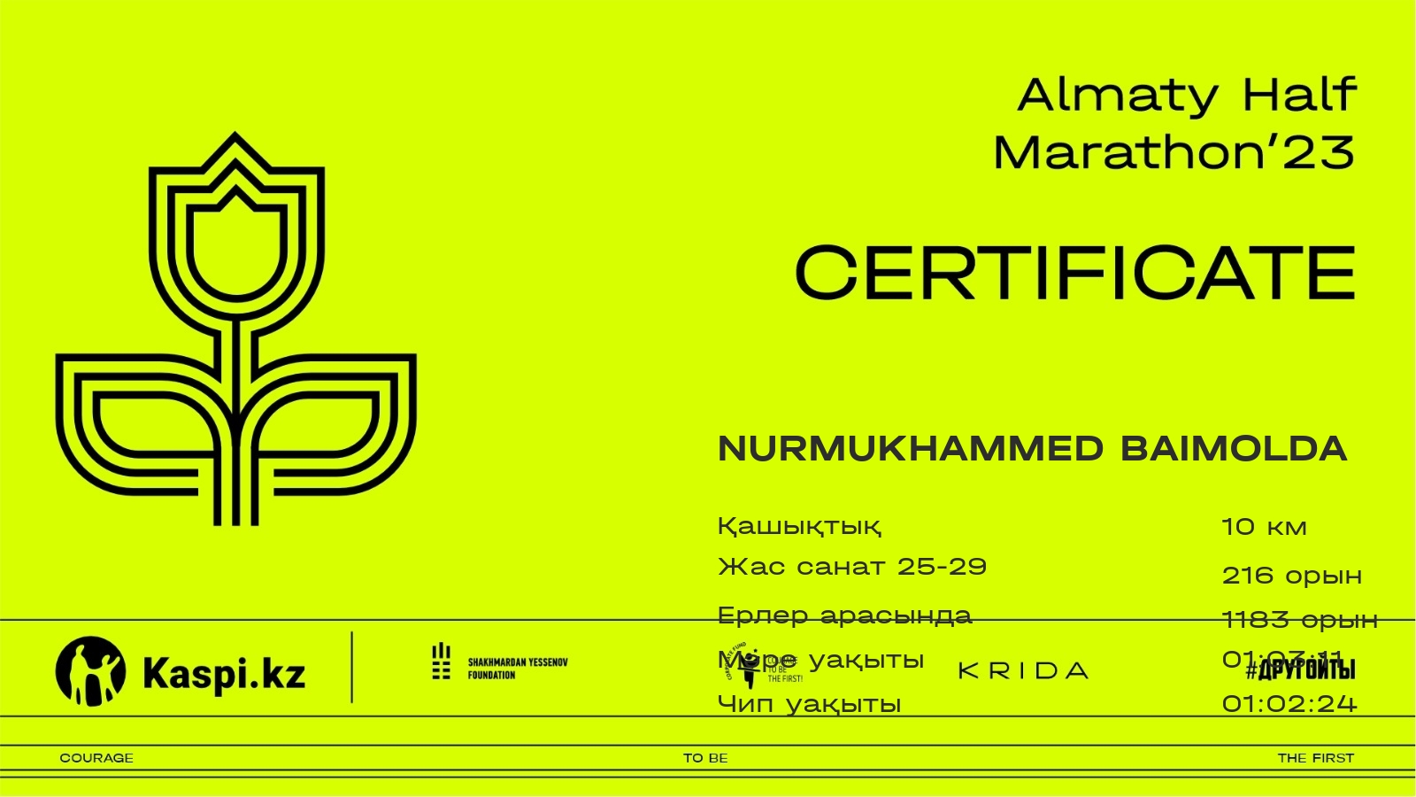 | 1629 | Nurmukhammed Baimolda | ![]() | Almaty | 6463 | 00:42:24.22 | 01:03:11.38 | 01:02:24.90 | Жүктеп алу |