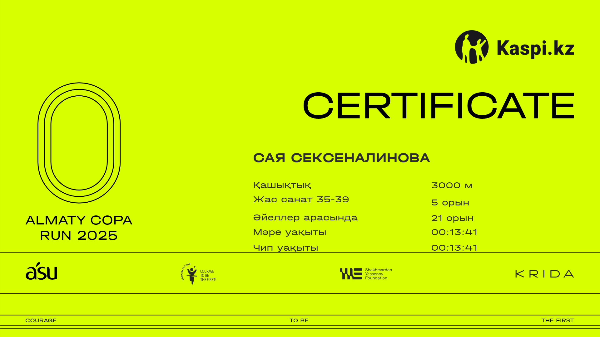 | 58 | Дмитрий Лютый | ![]() | Алматы | 500 | 00:11:43.90 | 00:11:43.90 | Жүктеп алу |