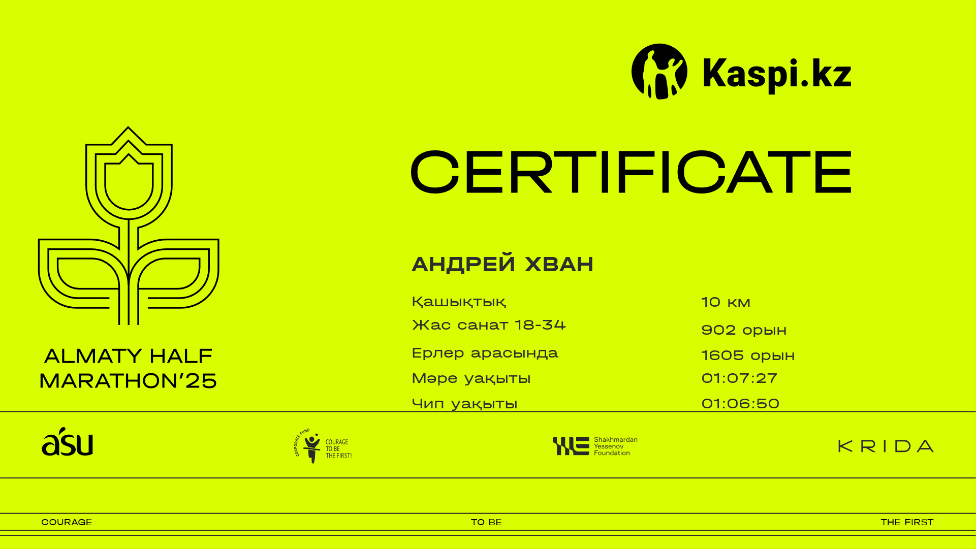 | 2410 | Андрей Хван | ![]() | Алматы | 7456 | 00:45:20 | 01:07:27 | 01:06:50 | Жүктеп алу |