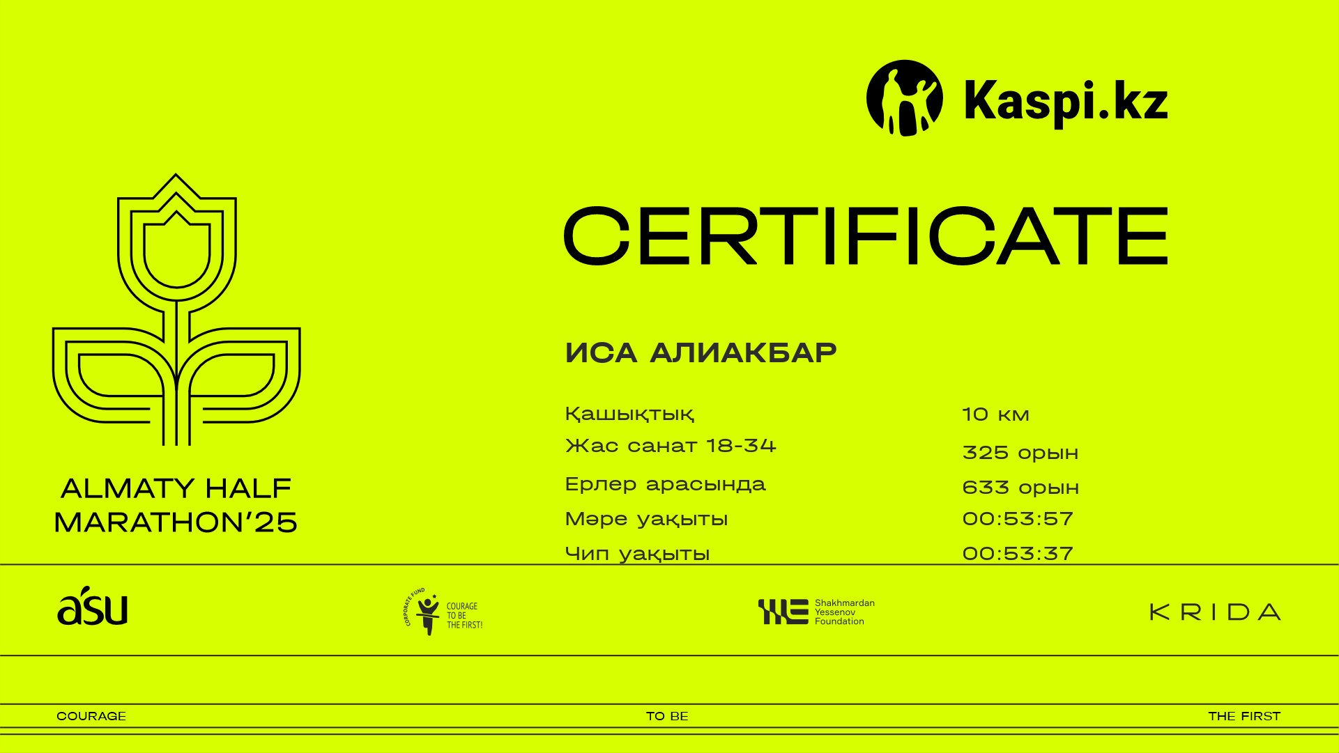 ОрынҚатысушыЕлҚалаНөмір6.5 kmФинишУақыт чипіСертификат