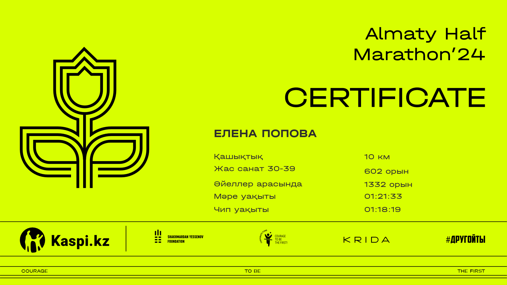 | 3383 | Александра Кочубина | ![]() | Almaty | 6252 | 00:55:07 | 01:23:58 | 01:21:35 | Жүктеп алу |