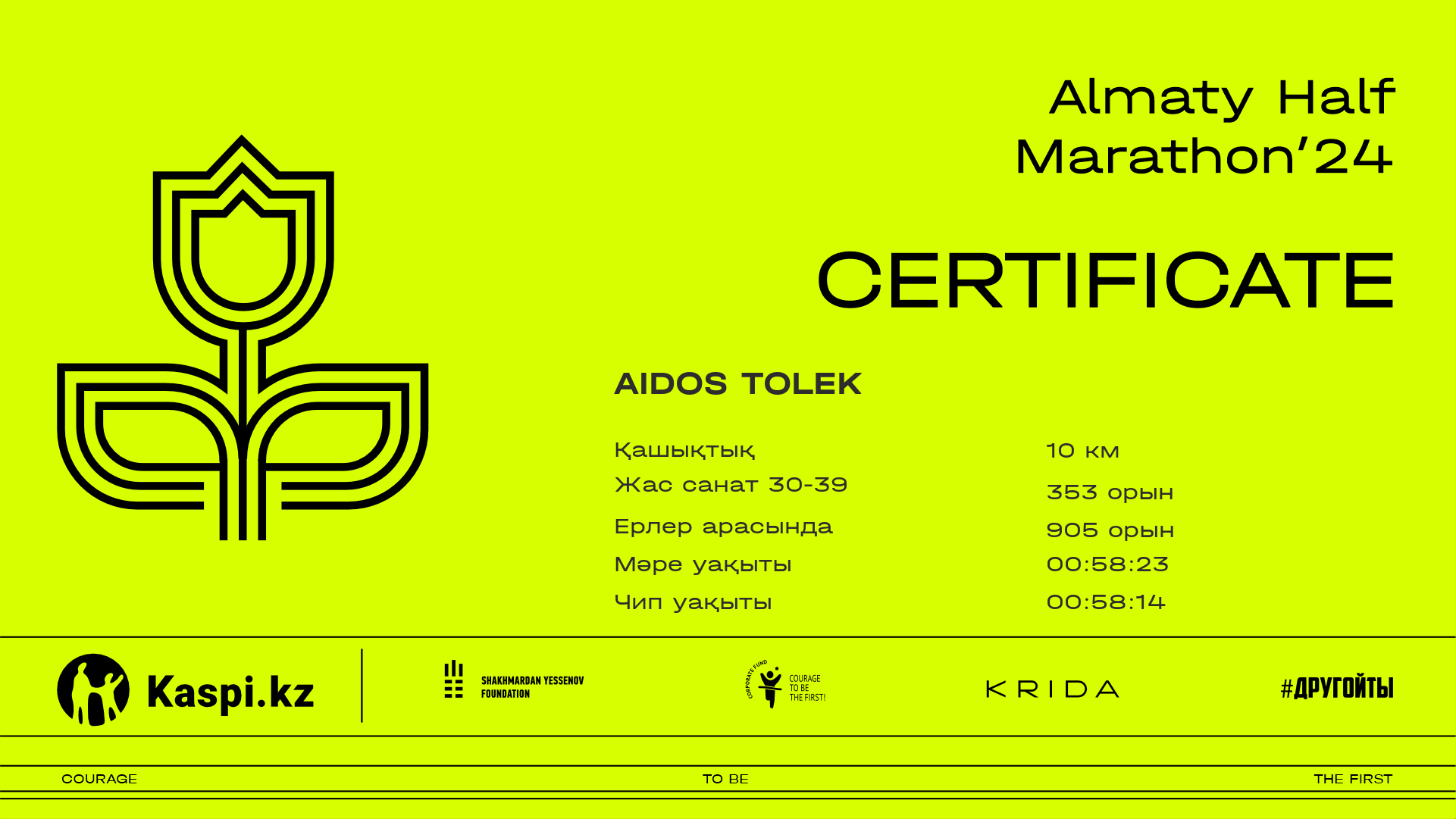 | 58 | Aidos Omarkulov | ![]() | Алматы | 4299 | 00:25:32 | 00:38:23 | 00:38:16 | Жүктеп алу |