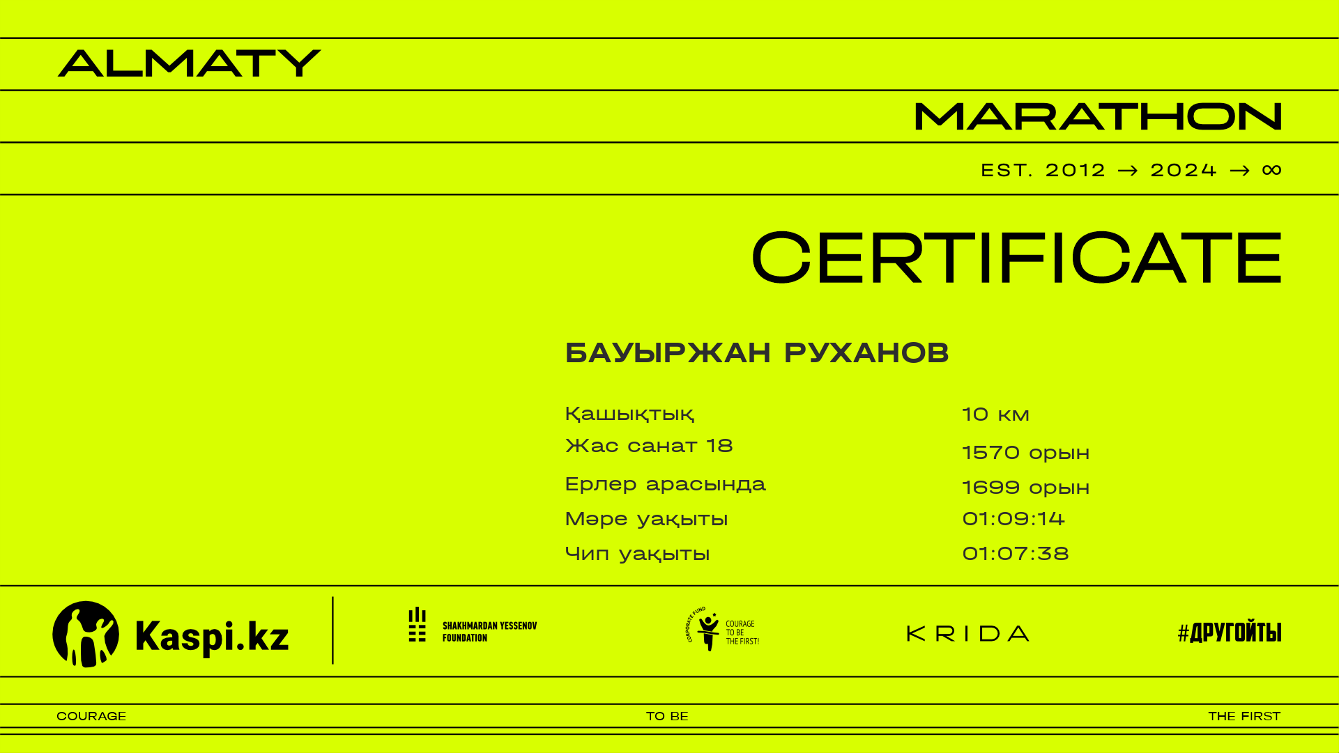 | 2358 | Daulet Telkhozhayev | ![]() | Алматы | 5805 | 00:53:17.57 | 01:09:28.34 | 01:06:34.18 | Жүктеп алу |