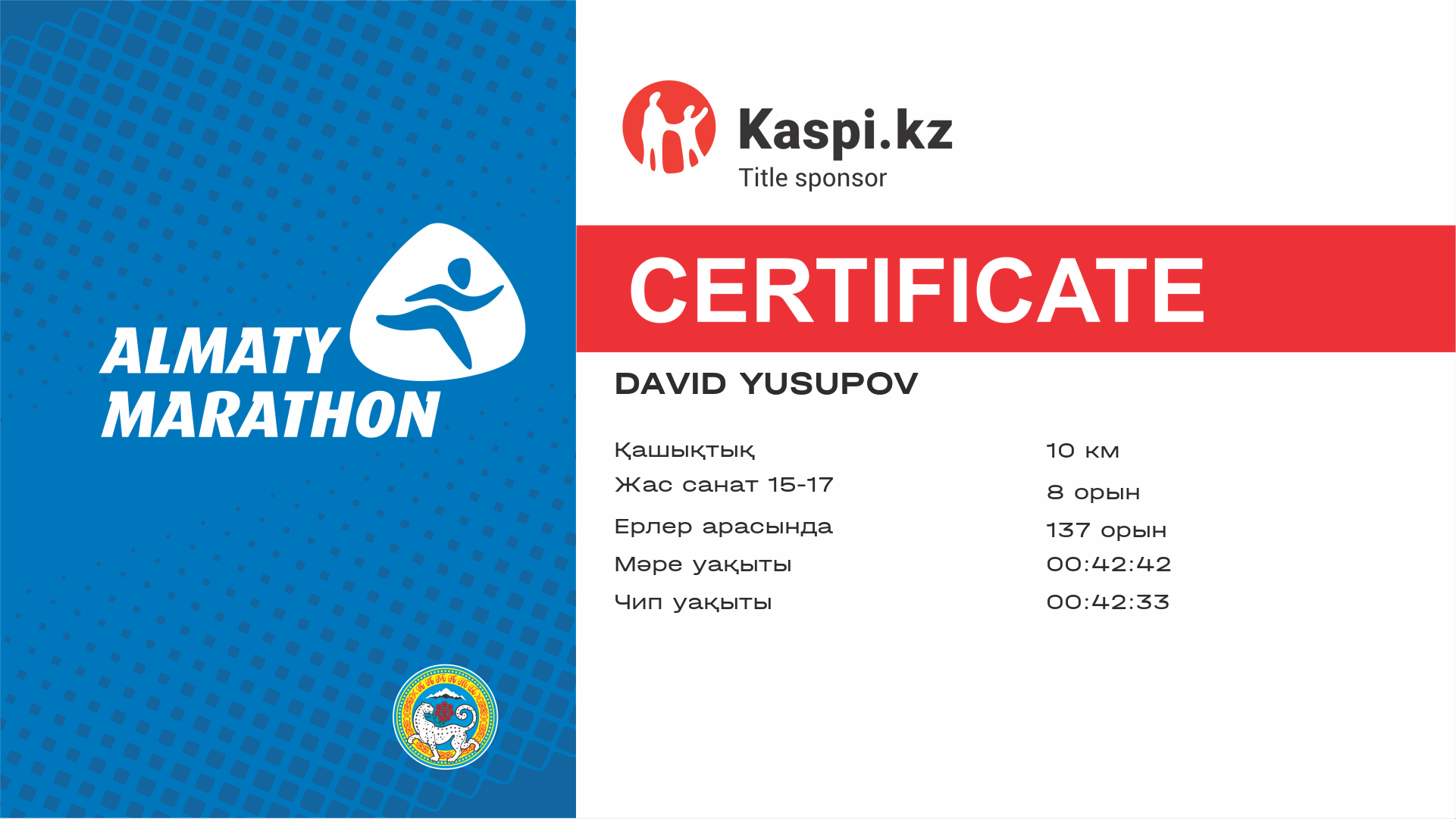 | 142 | Аден Маденов | ![]() | Алматы | 11656 | 00:30:57 | 00:42:38 | 00:42:20 | Жүктеп алу |