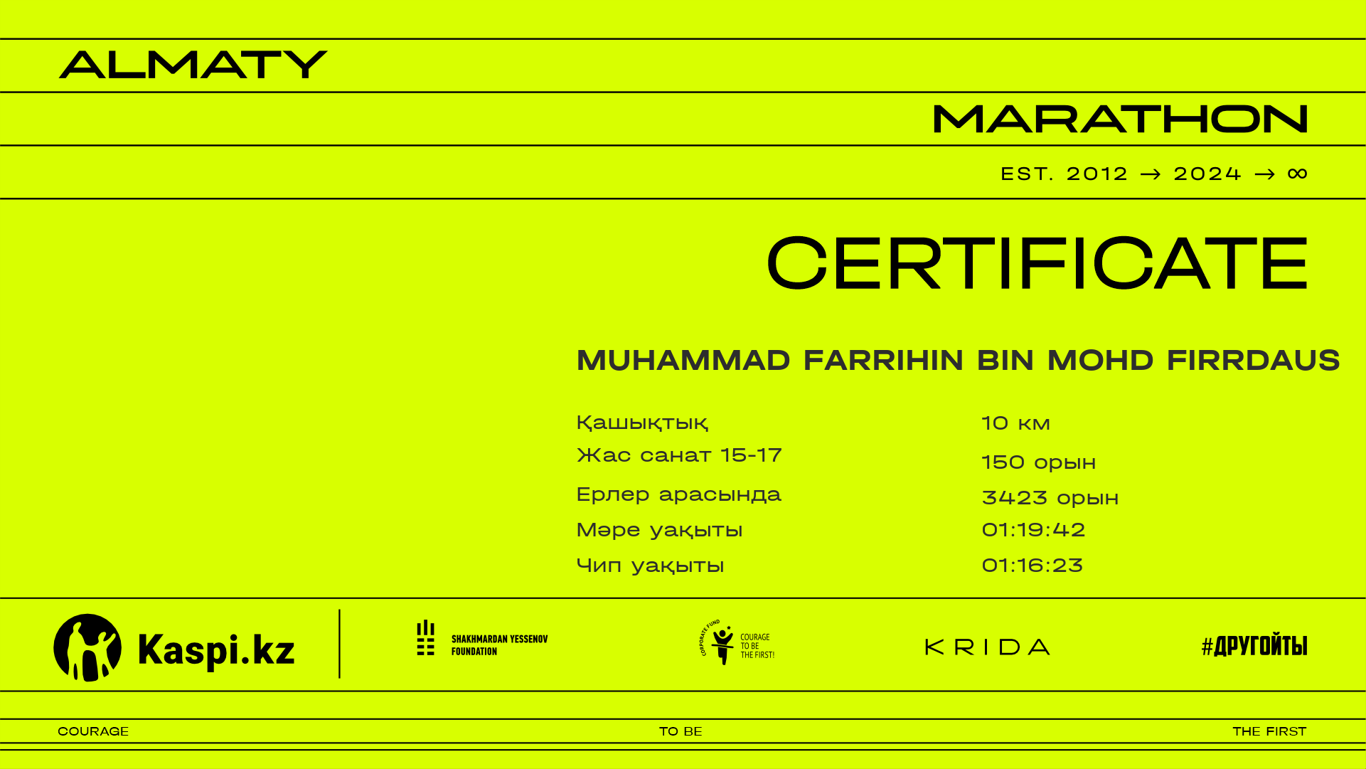 | 3576 | Murtaza Rafatov | ![]() | Алматы | 10059 | 01:02:53.49 | 01:11:18.19 | 01:09:17.34 | Жүктеп алу |