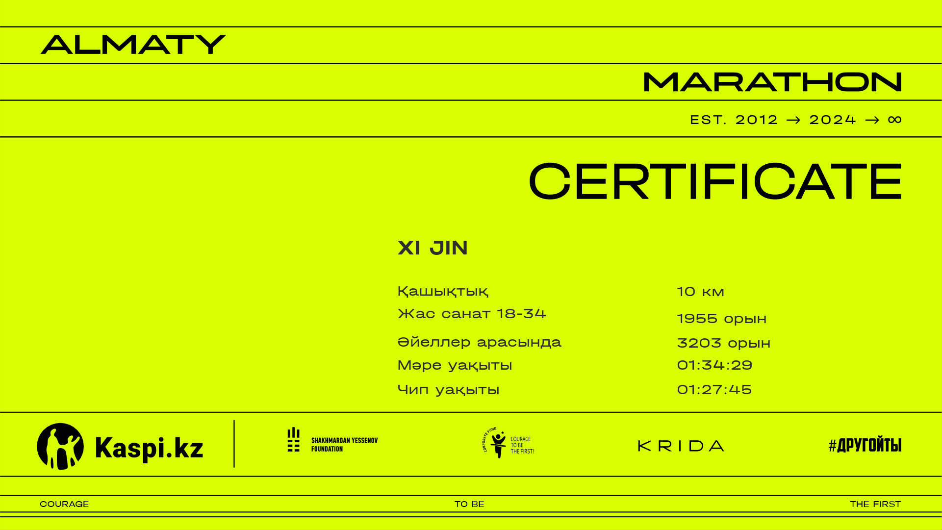 | 7445 | Алина Адил | ![]() | Алматы | 13881 | 01:26:29.01 | 01:36:57.58 | 01:31:17.49 | Жүктеп алу |