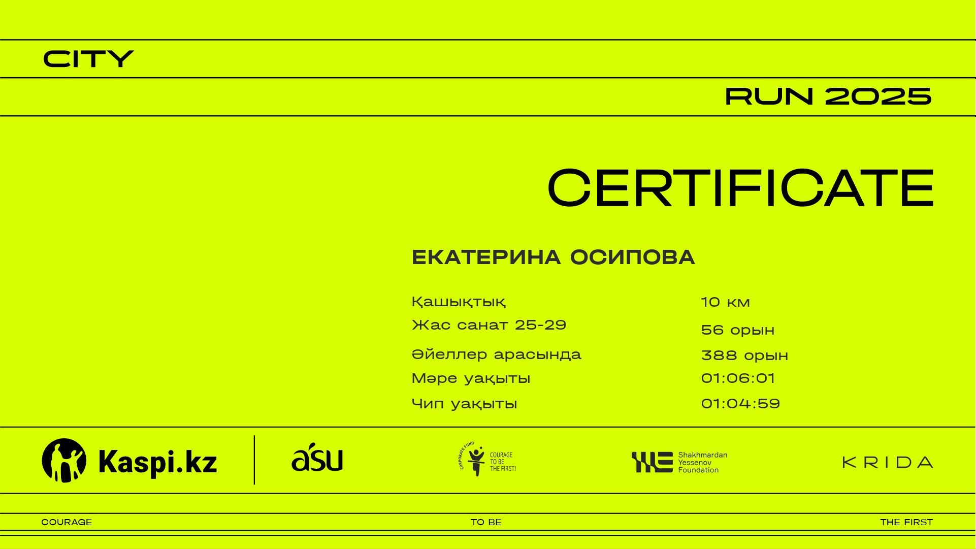 | 1347 | Наталья Белоусова | ![]() | Алматы | 1776 | 00:17:48 | 00:29:53 | 00:42:44 | 00:56:11 | 01:06:25 | 01:08:04 | 01:07:09 | Жүктеп алу |