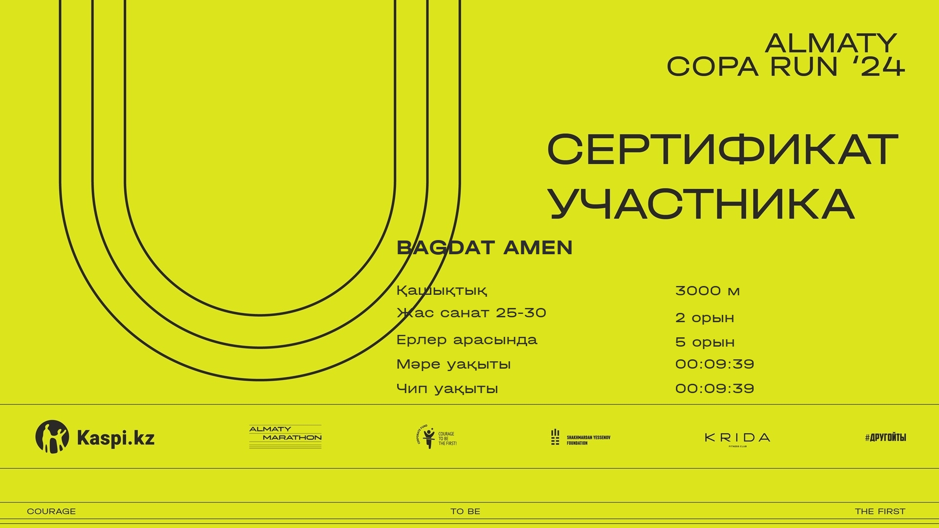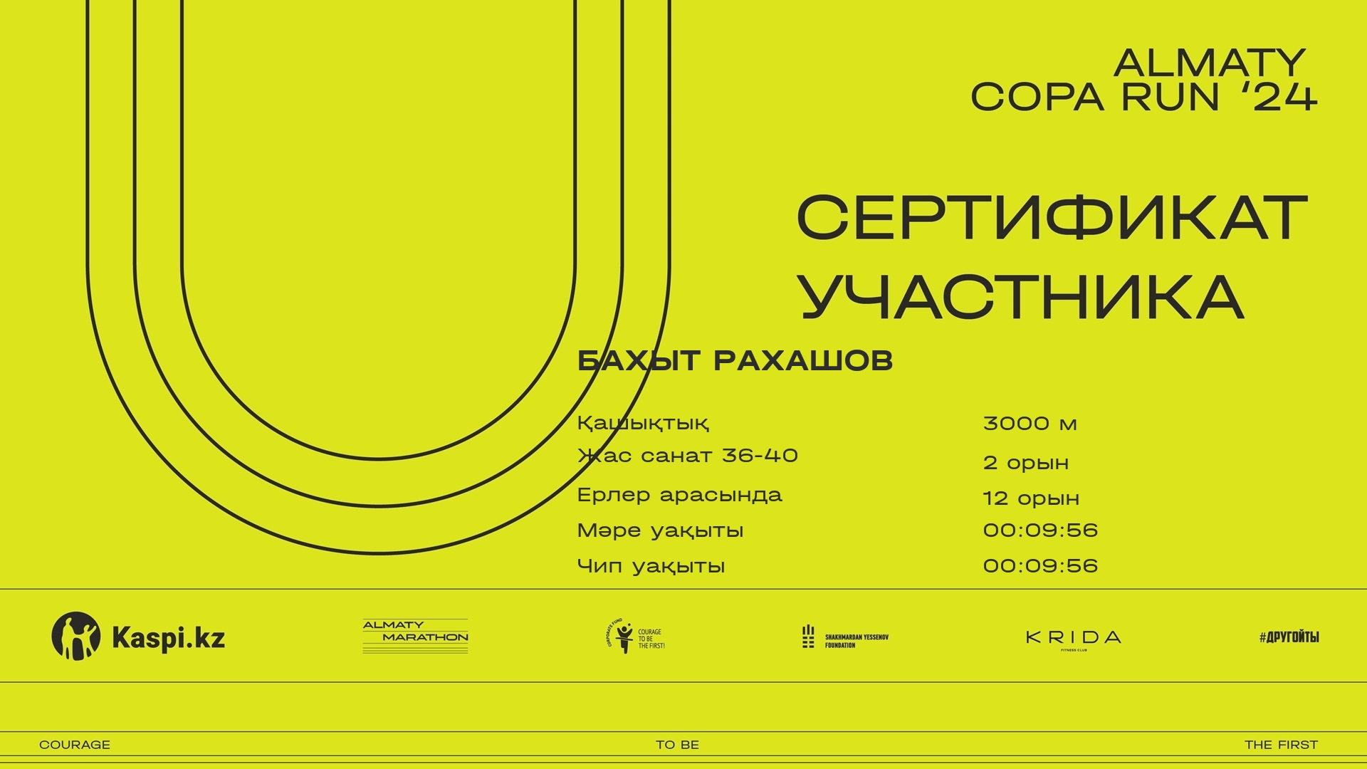 | 11 | Yerden Suraganov | ![]() | Алматы | 694 | 00:09:56.0 | Жүктеп алу |