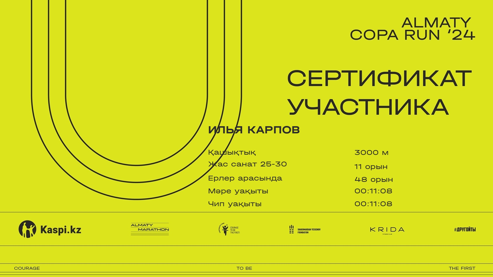| 58 | Ерлан Байдильдин | ![]() | Алматы | 556 | 00:11:23.3 | Жүктеп алу |