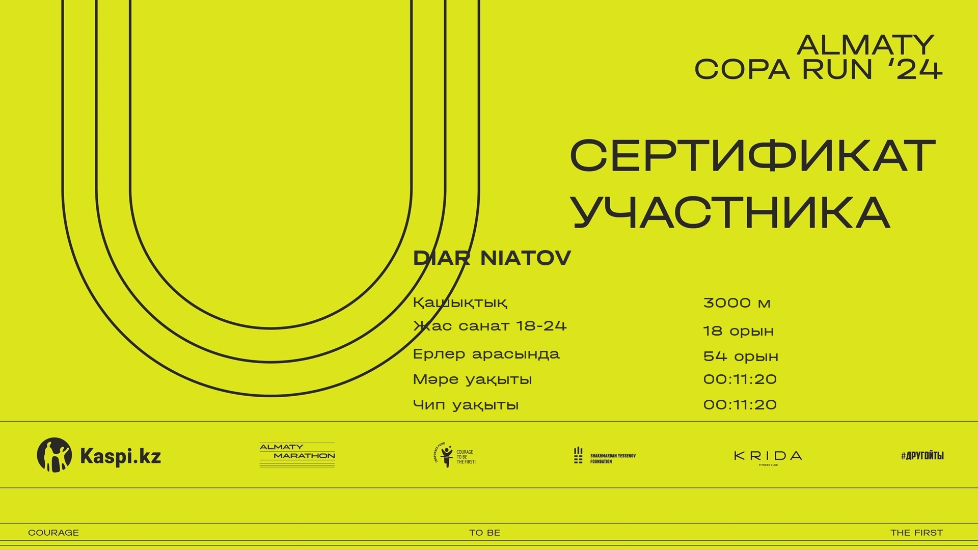 | 57 | Diar Niatov | ![]() | Almaty | 640 | 00:11:20.4 | Жүктеп алу |