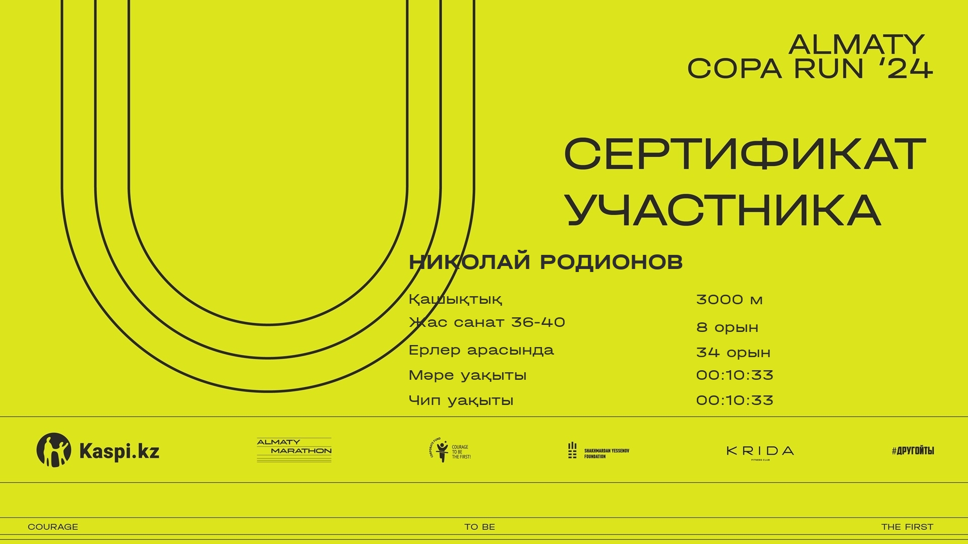 | 35 | Николай Родионов | ![]() | Алматы | 669 | 00:10:33.9 | Жүктеп алу |