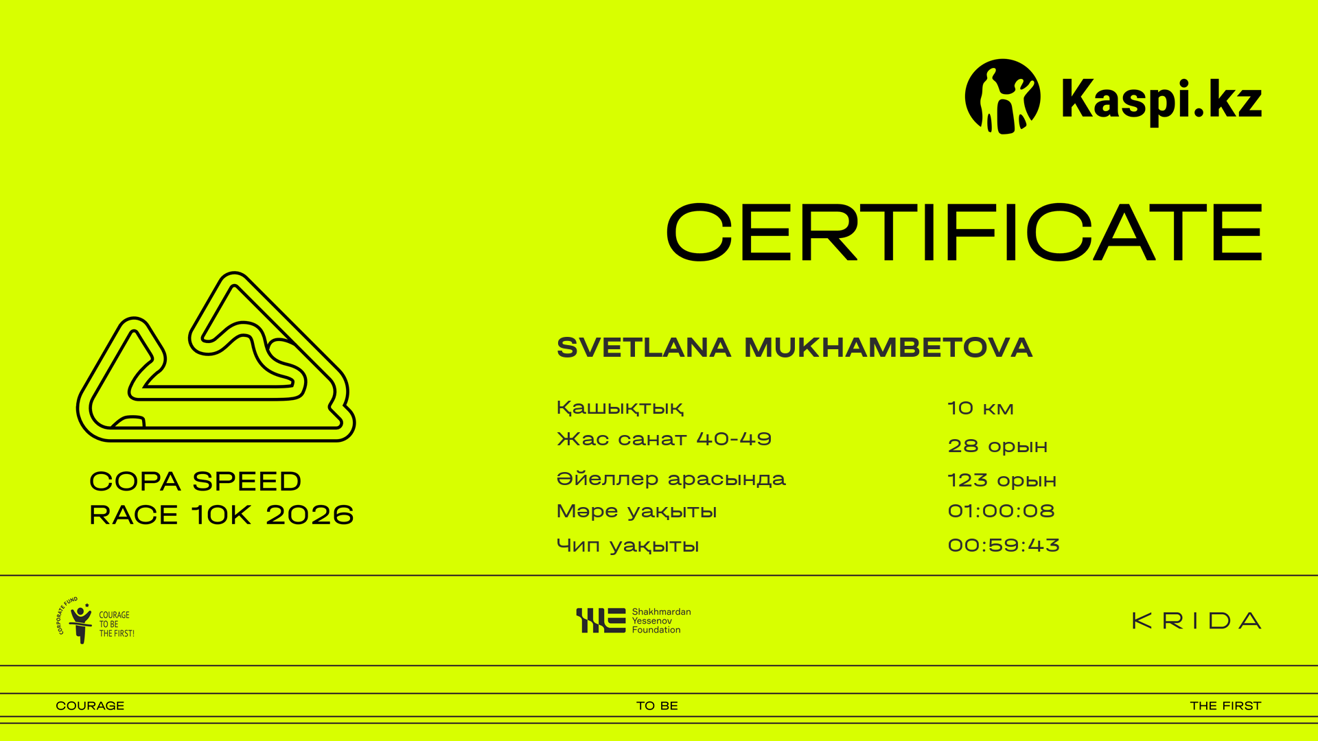 | 668 | Sadam Saidamov | ![]() | Almaty | 475 | 00:12:27.83 | 00:23:01.95 | 00:30:18.58 | 00:44:45.29 | 00:57:05.10 | 01:04:34.91 | 01:04:17.26 | Жүктеп алу |