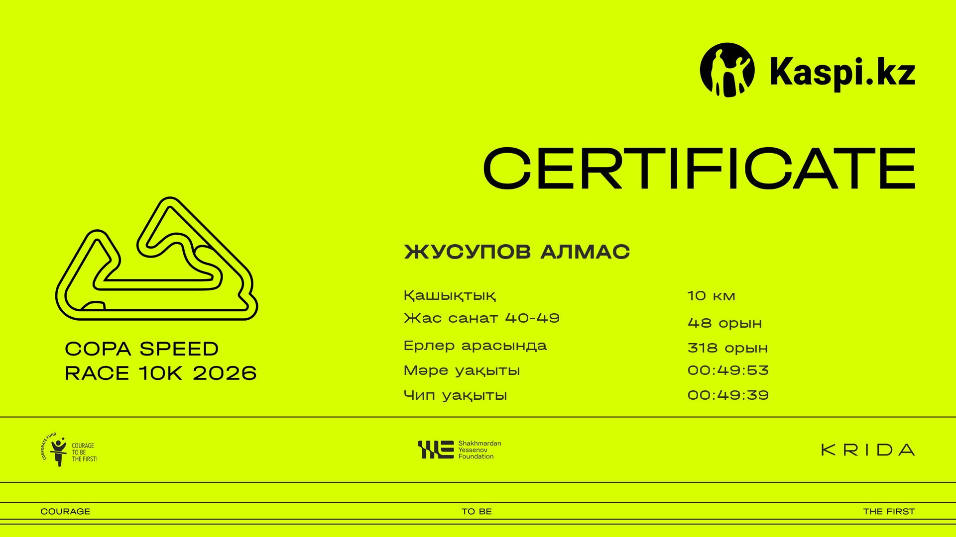 | 584 | SAKEN KASSYMBAYEV | ![]() | Алматы | 434 | 00:12:28.13 | 00:22:59.96 | 00:30:18.46 | 00:42:34.77 | 00:53:09.83 | 00:59:50.45 | 00:59:36.94 | Жүктеп алу |