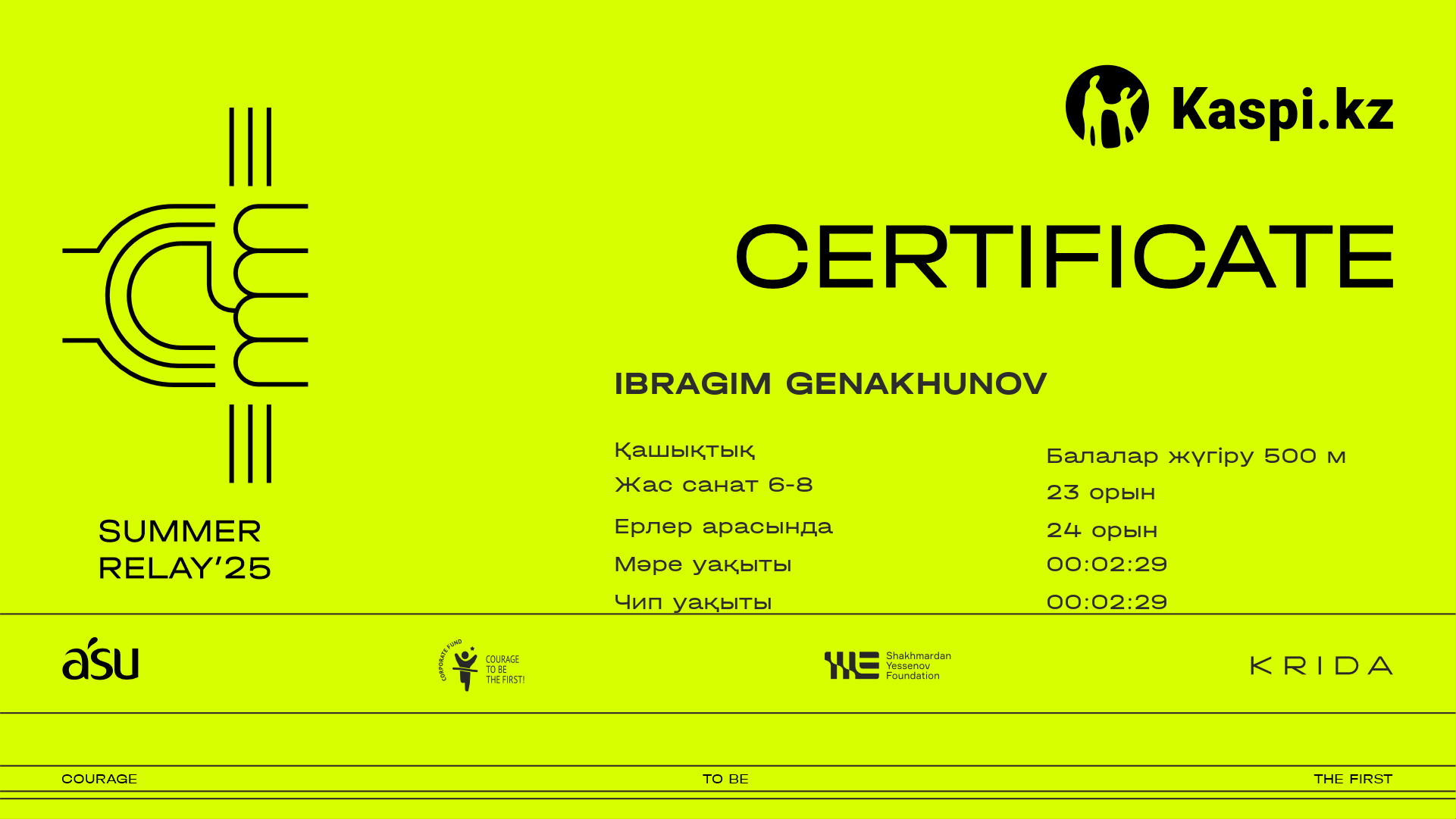 | 48 | Алдияр Ерланов | ![]() | Алматы | 83 | 00:02:36.50 | 00:02:35.30 | Жүктеп алу |