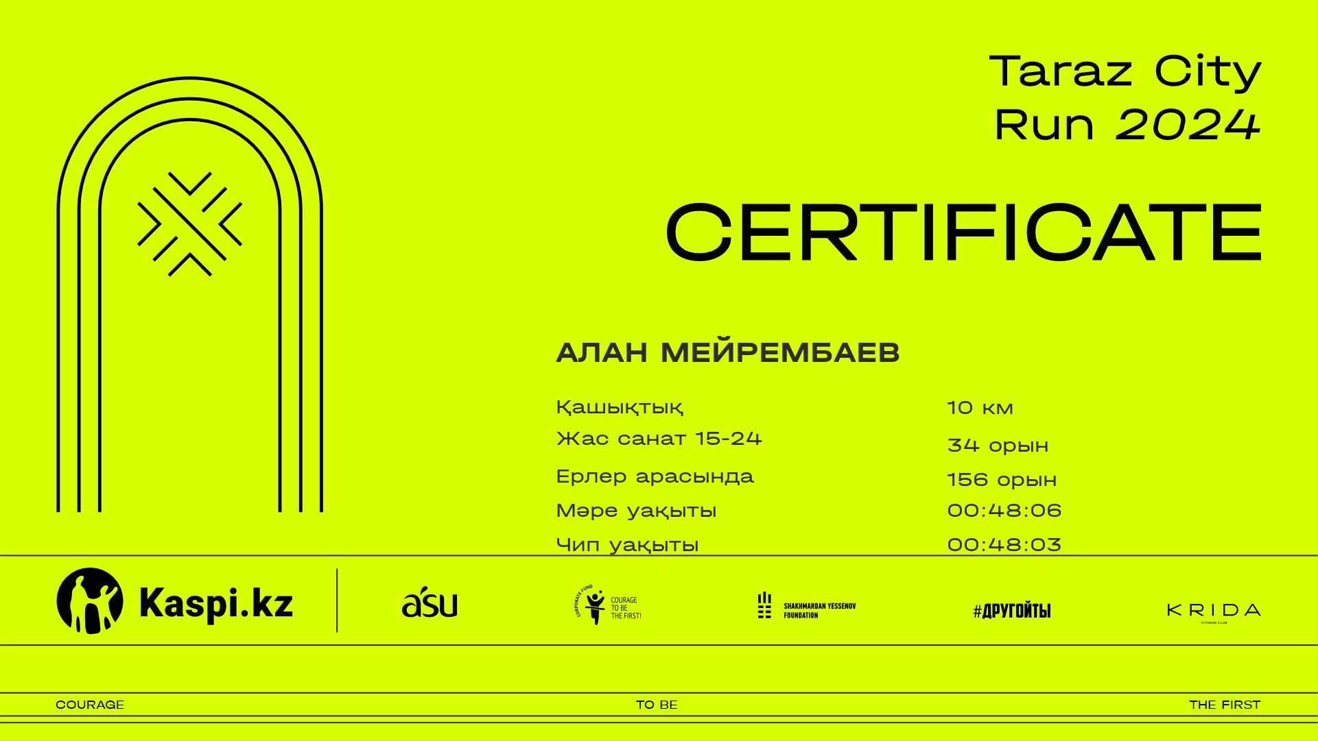 ОрынҚатысушыЕлҚалаНөмір2.5 km5 km7.5 kmФинишУақыт чипіСертификат