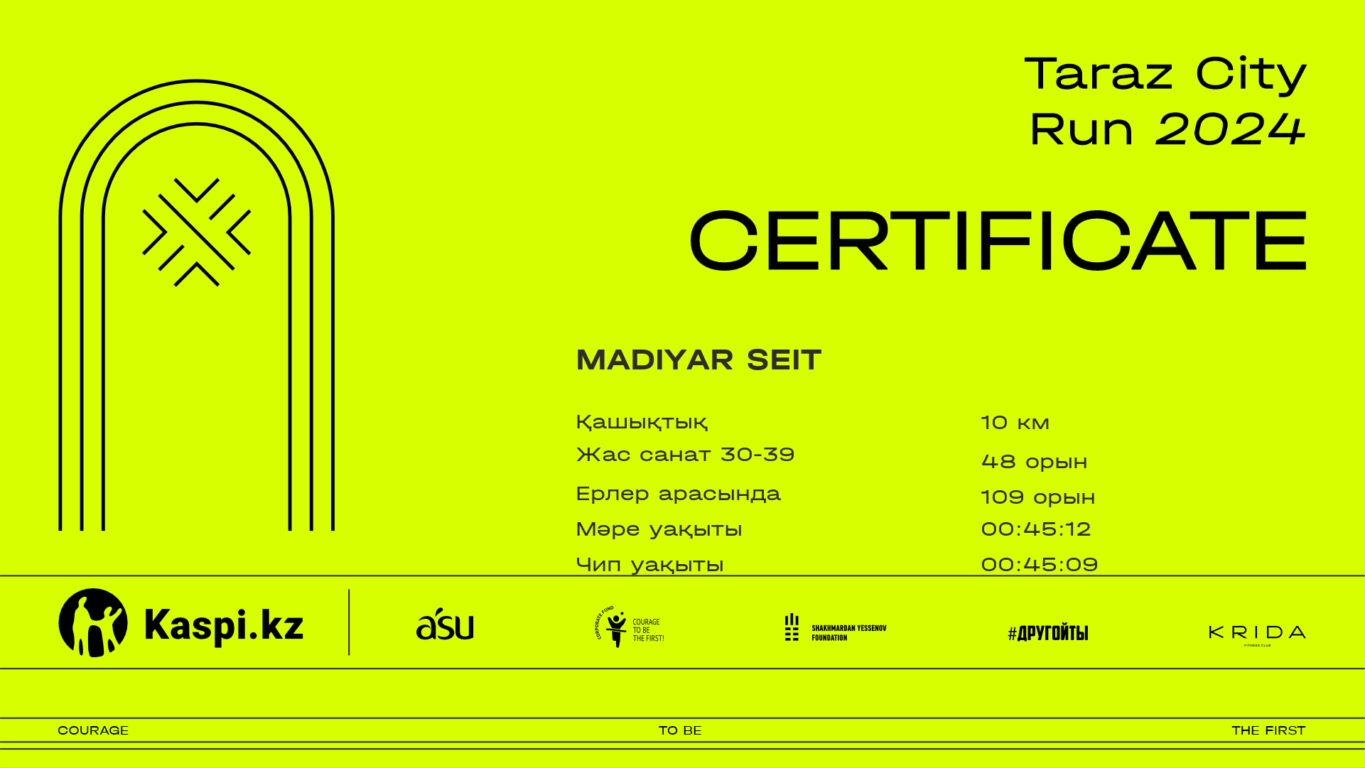 | 129 | Саян Алтынбек | ![]() | Тараз | 514 | 00:10:03.20 | 00:21:22.90 | 00:33:34.20 | 00:45:26.90 | 00:45:26.90 | Жүктеп алу |