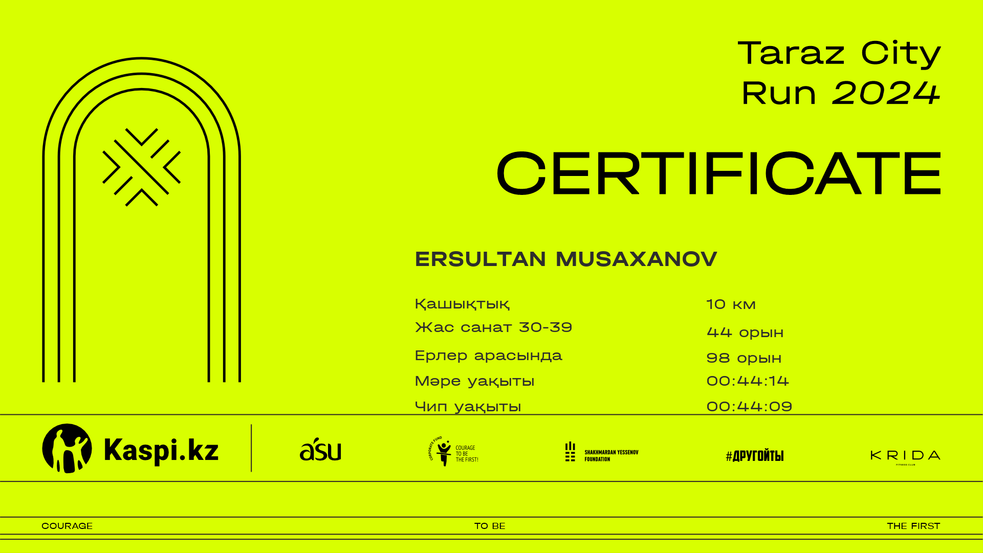 | 263 | Nurahmet Azhibek | ![]() | Шымкент | 357 | 00:11:58.80 | 00:25:33.70 | 00:39:54.50 | 00:53:21.40 | 00:53:15.20 | Жүктеп алу |