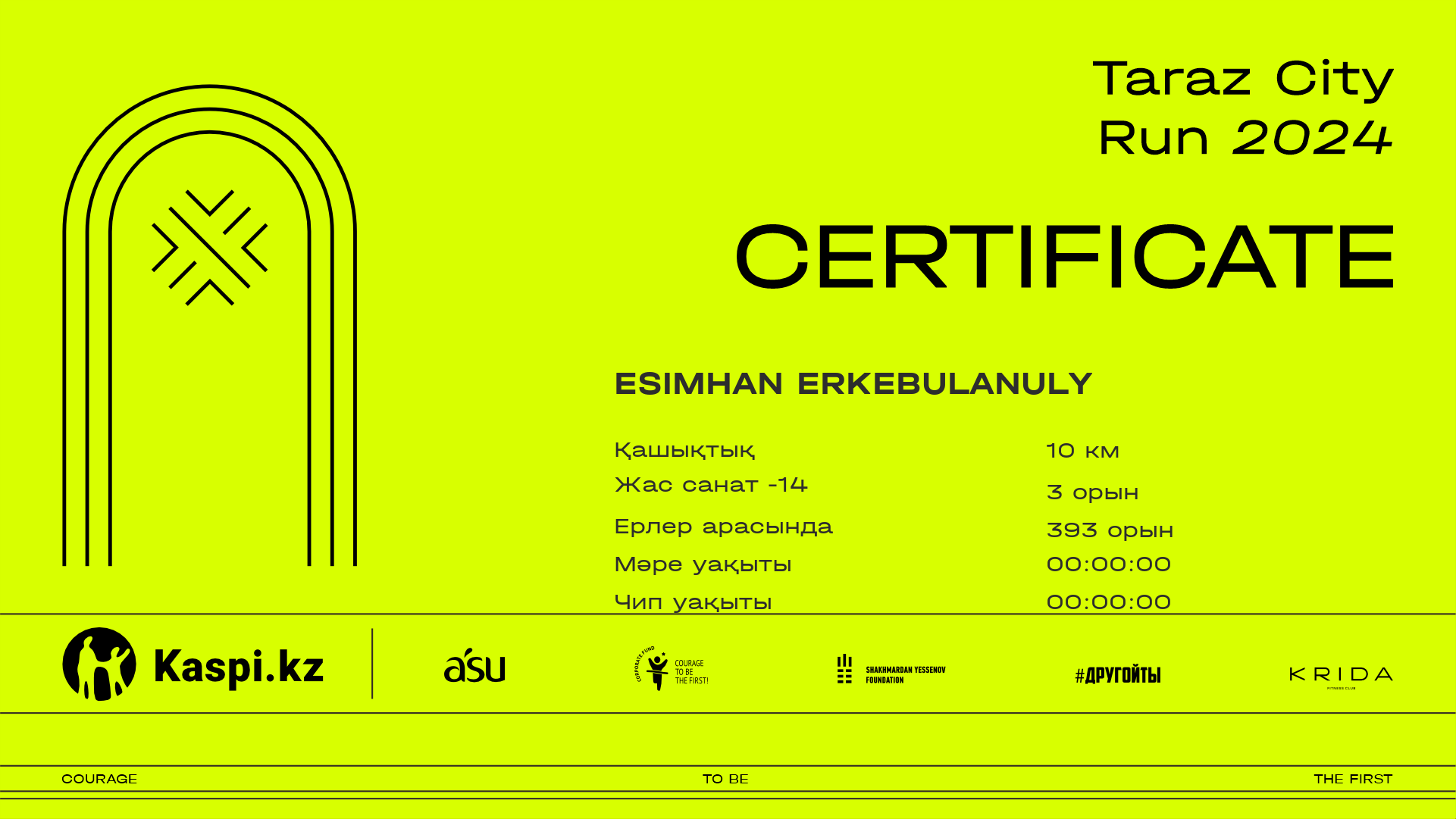 ОрынҚатысушыЕлҚалаНөмір2.5 km5 km7.5 kmФинишУақыт чипіСертификат