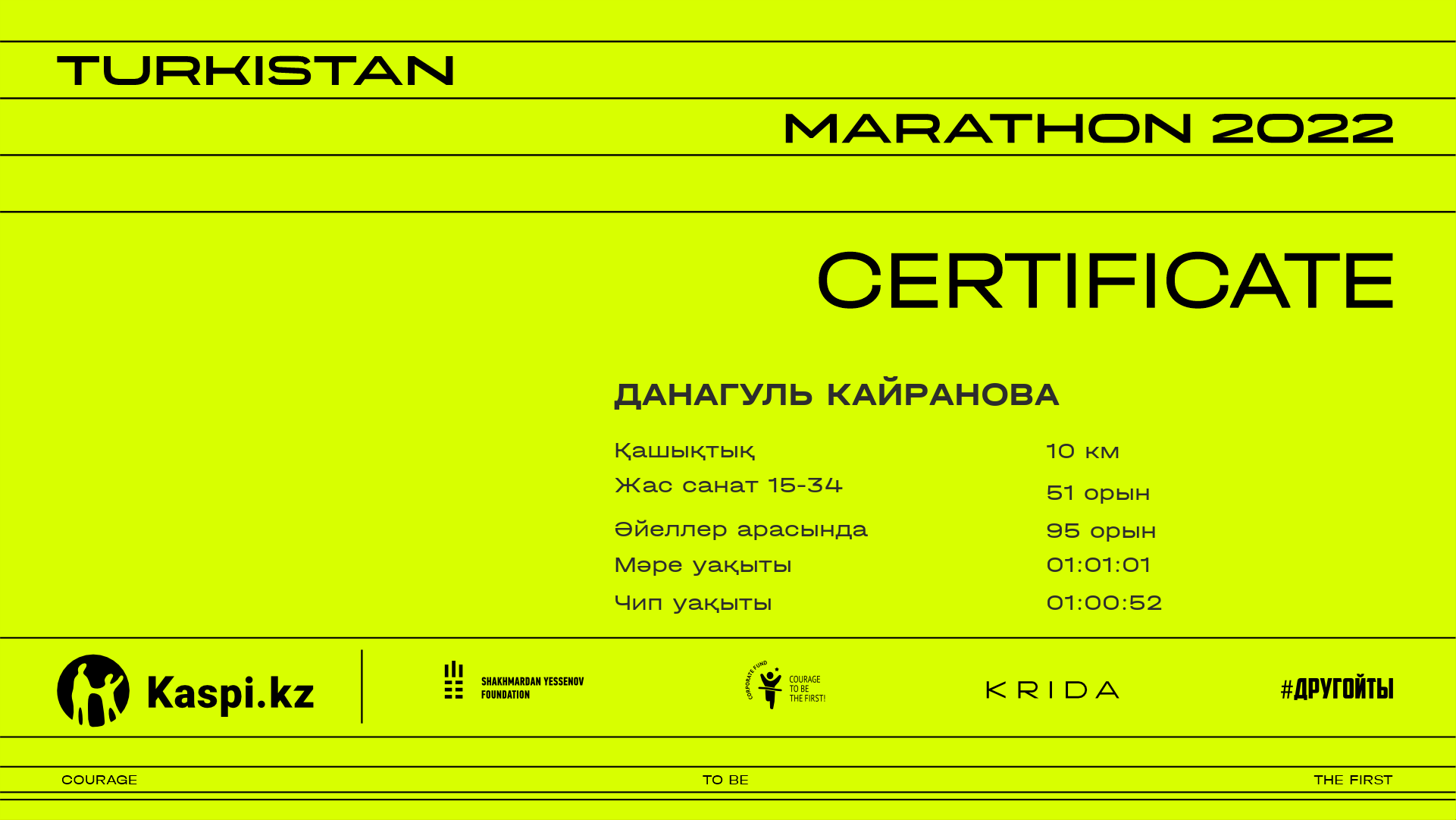 | 553 | Akniyet Abdikadirova | ![]() | Shymkent | 1086 | 00:35:13.95 | 01:10:36.50 | 01:09:59.72 | Жүктеп алу |