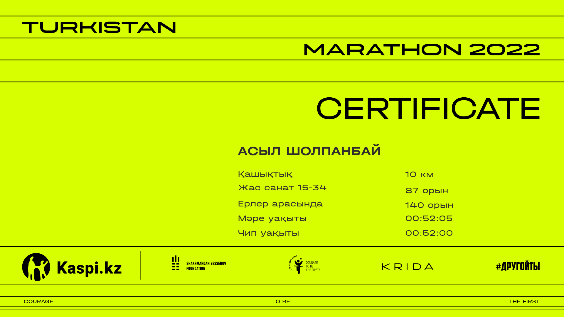 | 175 | Роллан Насырлаев | ![]() | Шымкент | 814 | 00:26:13.22 | 00:52:35.91 | 00:52:26.89 | Жүктеп алу |