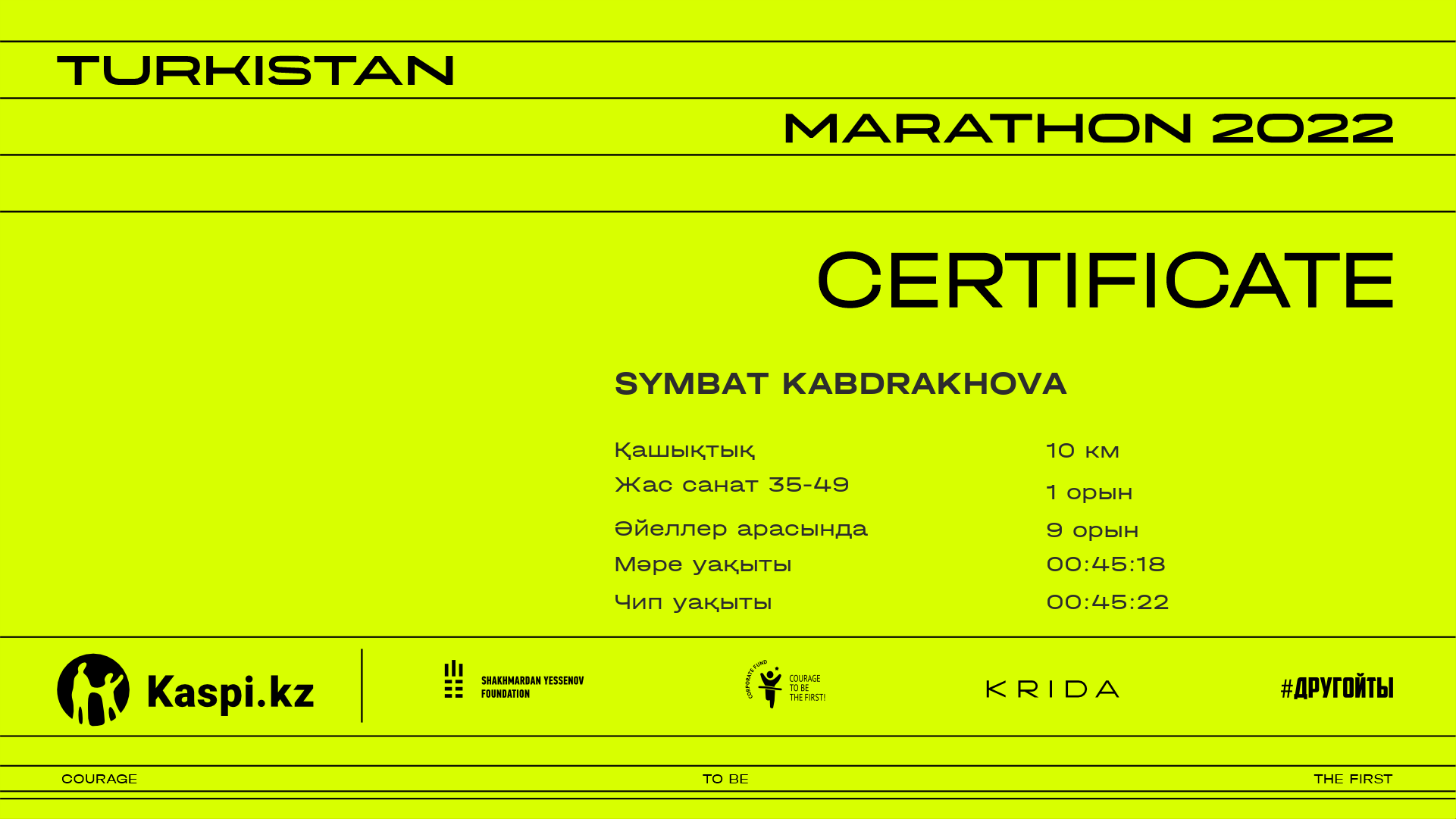 | 553 | Akniyet Abdikadirova | ![]() | Shymkent | 1086 | 00:35:13.95 | 01:10:36.50 | 01:09:59.72 | Жүктеп алу |