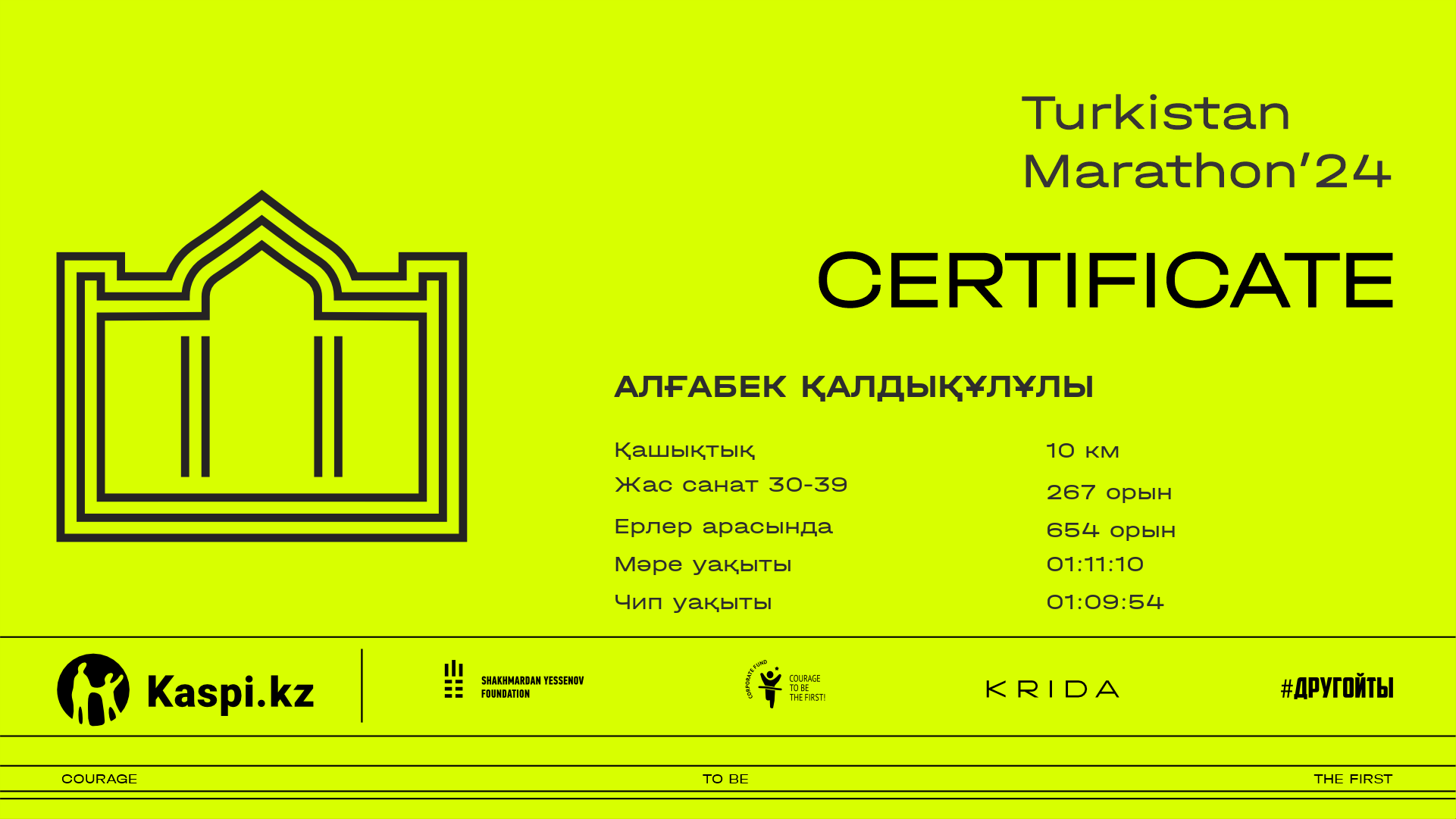 | 715 | Nurdaulet Beysenbay | ![]() | Туркестан | 2294 | 00:32:20 | 01:03:11 | 01:02:30 | Жүктеп алу |