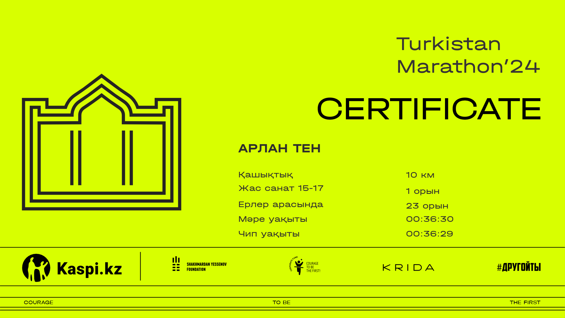 | 26 | Архат Төлеубек | ![]() | Алматы | 1827 | 00:17:54 | 00:36:31 | 00:36:30 | Жүктеп алу |