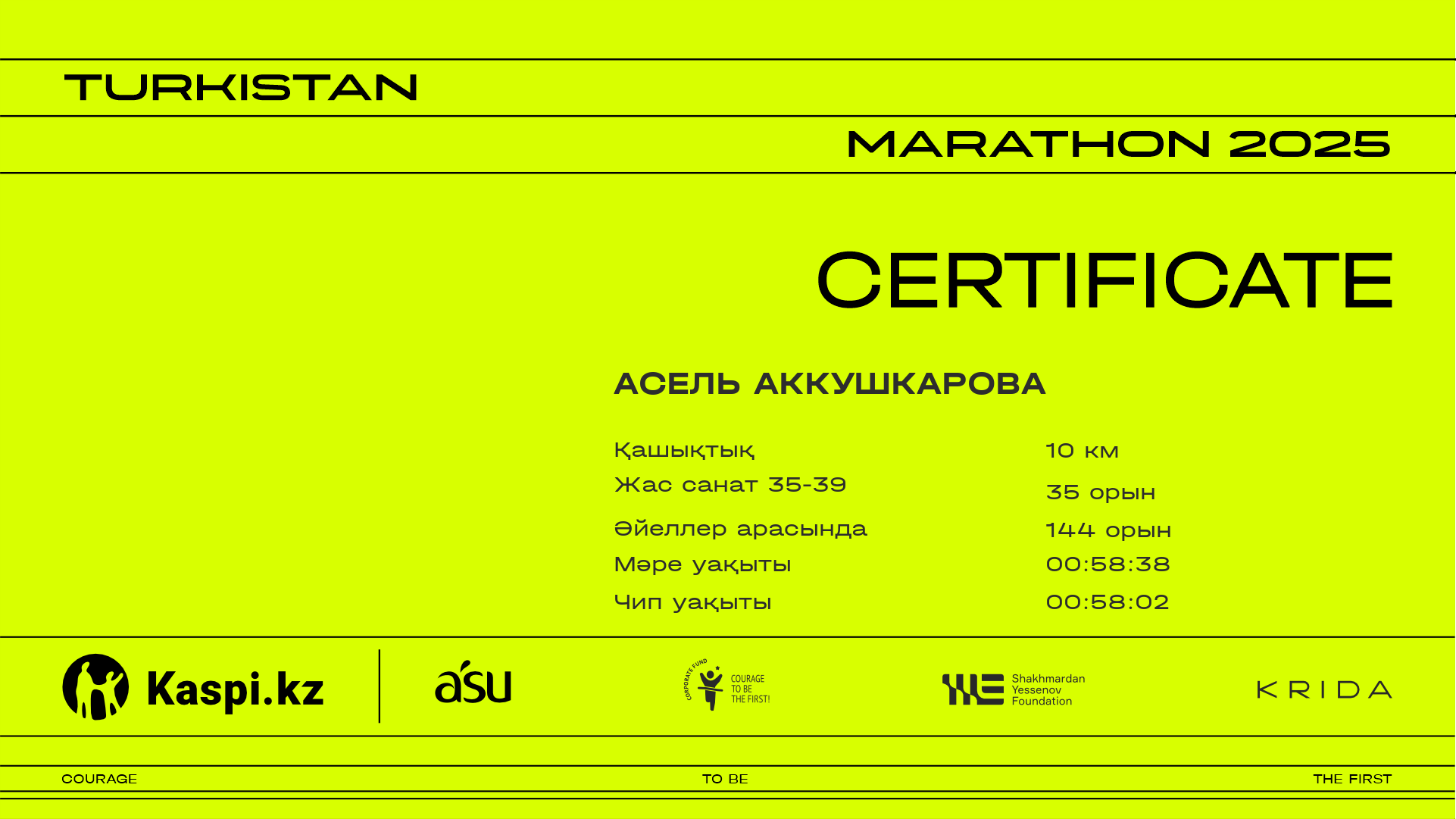| 537 | Асель Аккушкарова | ![]() | Астана | 1942 | 00:36:30 | 00:58:38 | 00:58:02 | Жүктеп алу |