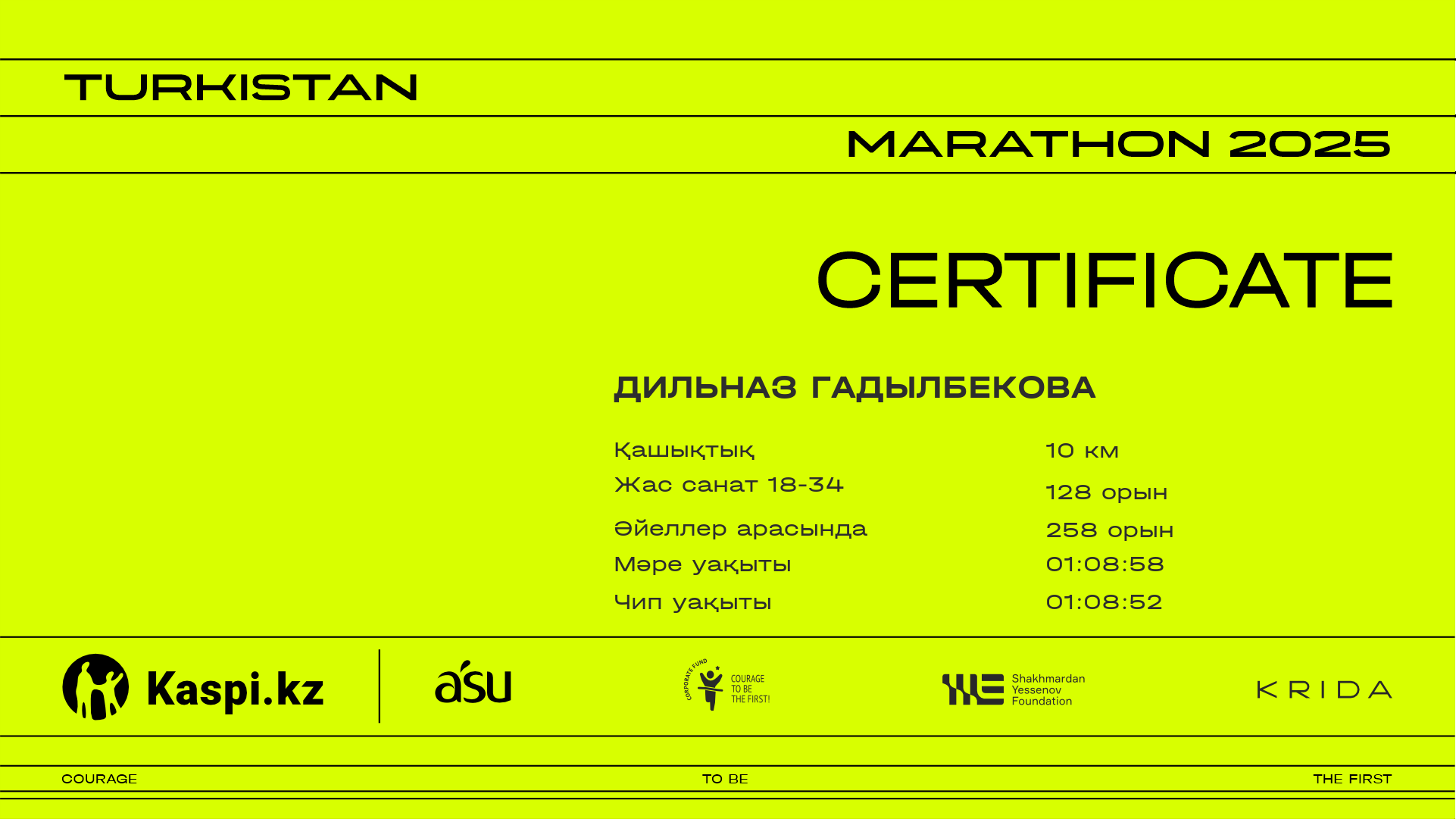 | 85 | Nurdaulet Shaymurat | ![]() | Шымкент | 1911 | 00:26:08 | 00:41:59 | 00:41:40 | Жүктеп алу |