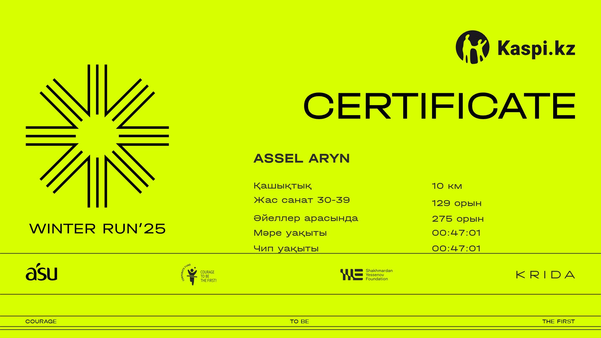 | 1146 | Арын Ракимбай | ![]() | Алматы | 165 | 00:26:36 | 00:48:53 | 01:08:06 | 01:07:49 | Жүктеп алу |