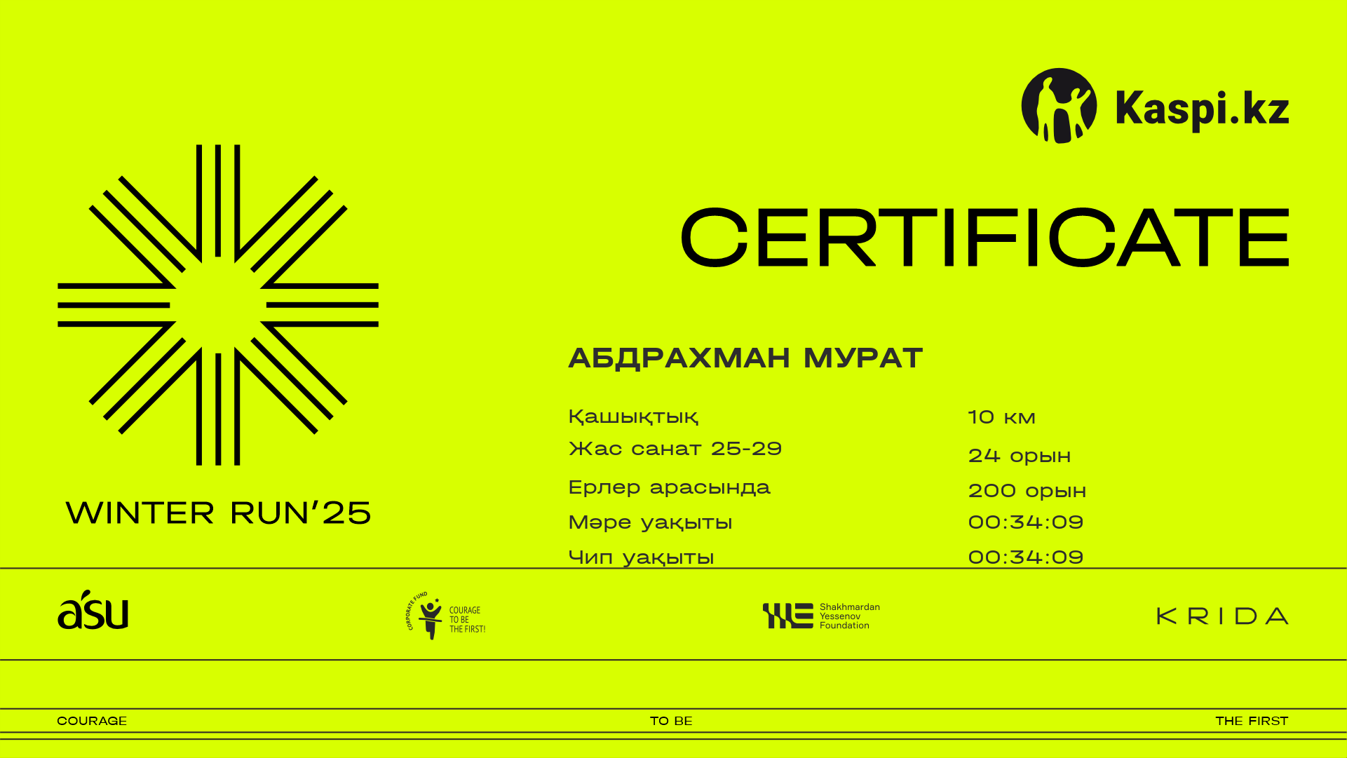 | 9 | Журагат Мурат | 75 | 00:13:48 | 00:24:45 | 00:34:29 | 00:34:29 | Жүктеп алу | ||