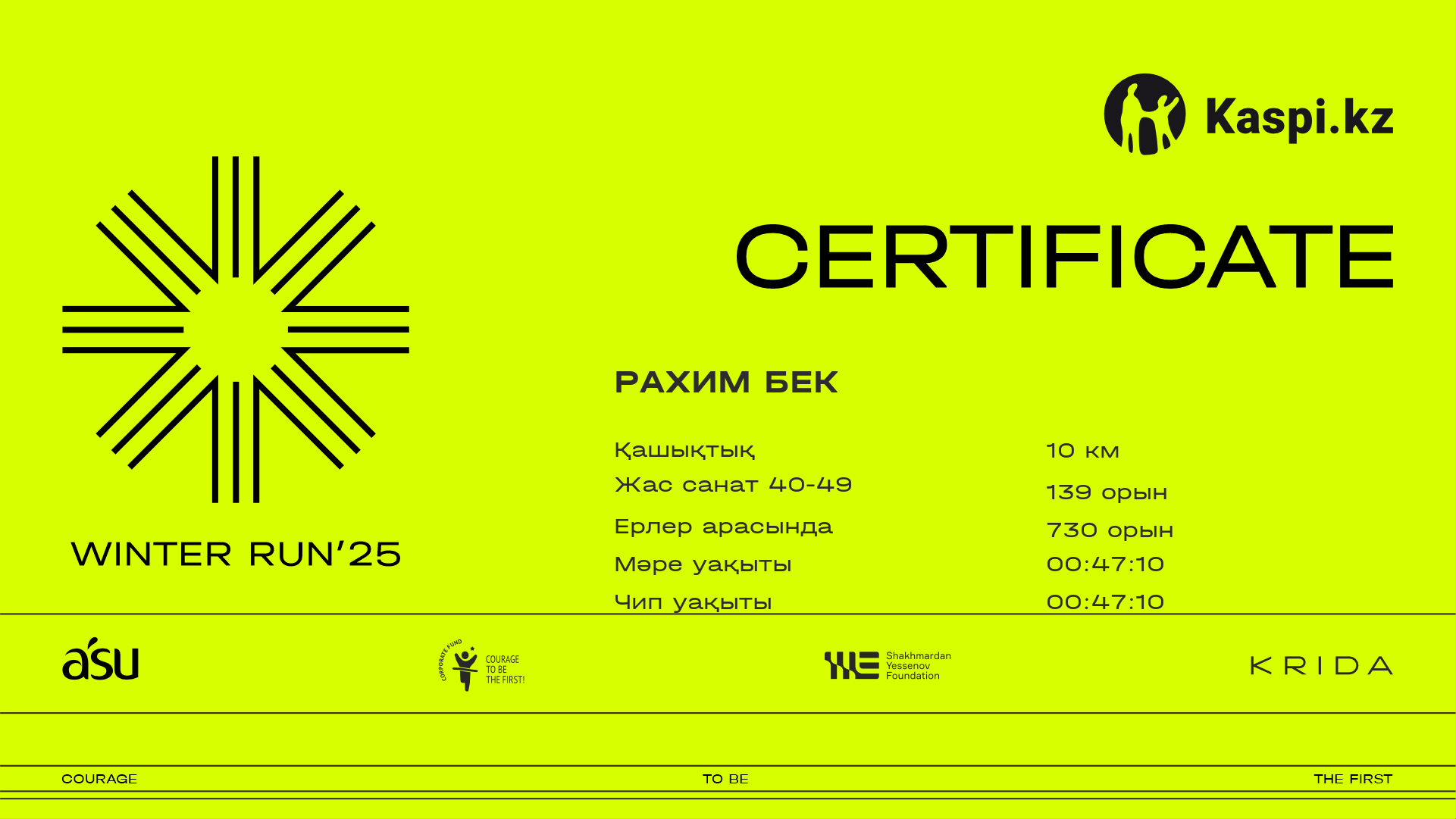 | 1000 | Темури Бек | ![]() | Алматы | 119 | 00:26:53 | 00:47:11 | 01:04:19 | 01:04:06 | Жүктеп алу |