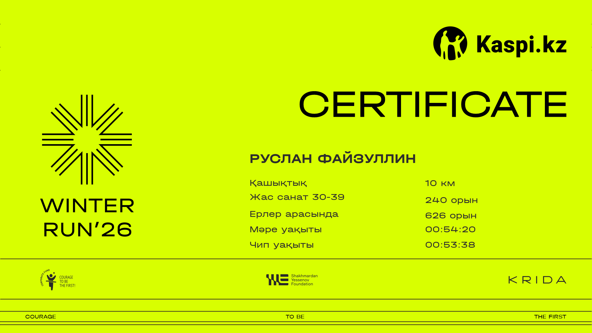 | 1139 | Артур Бабидов | ![]() | Алматы | 940 | 00:08:51.89 | 00:31:36.55 | 00:51:33.35 | 01:00:33.96 | 01:00:12.36 | Жүктеп алу |