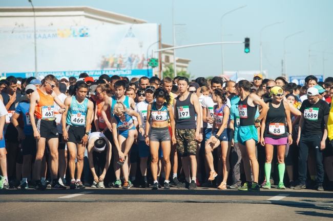 Порядка четырех тысяч участников стартовали с площади перед Ледовым дворцом, где проходил концерт - танцы, спортивные и музыкальные номера. В рядах желающих пробежать 21 км был олимпийский чемпион по боксу Серик Сапиев.