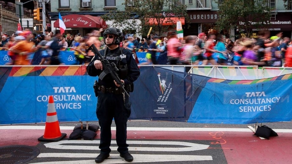 Несмотря на такой масштаб и количество участников и болельщиков, уровень безопасности в Нью-Йорке на высшем уровне. В камеру хранения можно сдавать вещи только в их специально выданных прозрачных пакетах, при том ты проходишь через арку-металлоискатель под надзором службы безопасности. В этом году организаторы вдвое увеличили число сотрудников, обеспечивающих безопасность: это не только полностью обмундированные и готовые к любому ЧП «копы» по трассе, но и наблюдательные команды везде, даже на крышах. Но при всем своем виде эти ребята на дистанции активно подбадривают бегунов.