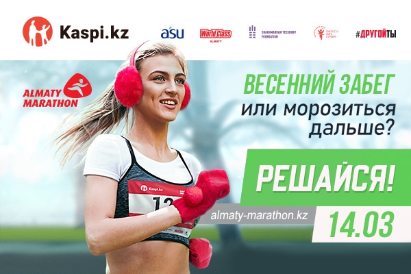 Генеральный партнер сезонных забегов и «Алматы марафона» – Kaspi.kz.