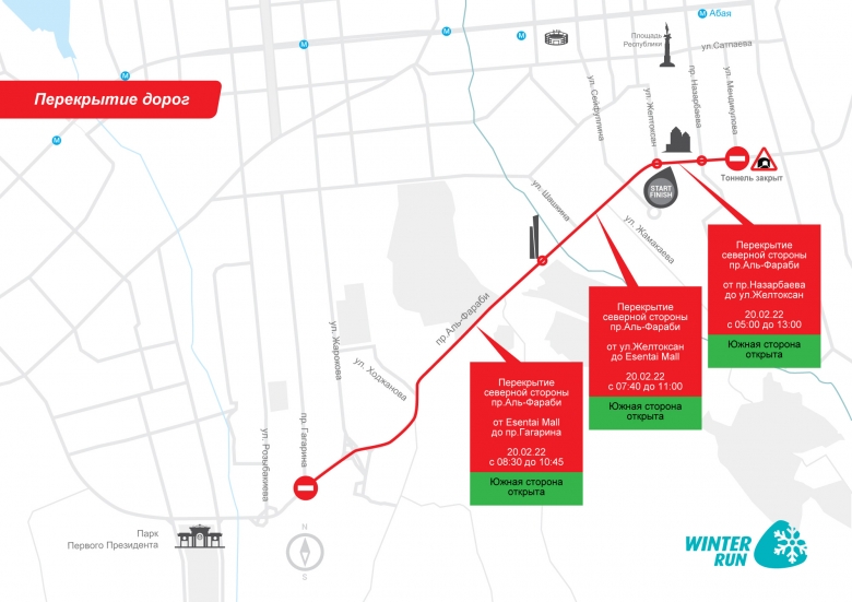 Таблица по перекрытию дорог на зимний забег «Winter Run» 2022 (20.02.2022)