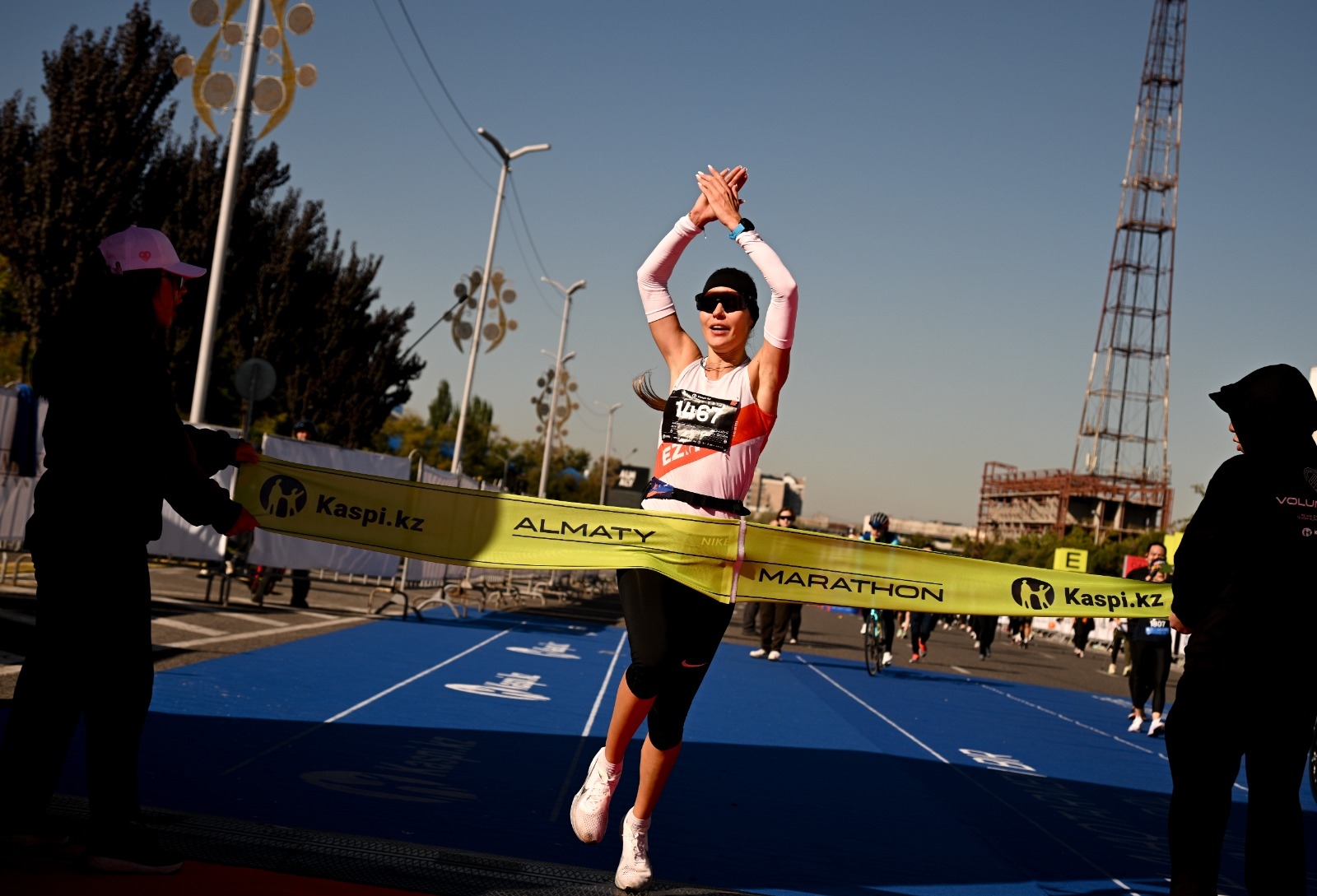 Вернемся же к участникам. В числе первых финишируют на дистанции 10 км. Это массовая дистанция – на старт вышло почти 10 000 участников. Одна из участниц прилетела на Almaty Marathon из Москвы: «Мы приехали вдвоём с подругой Натальей из бегового клуба "Легион". Трасса отличная, много спусков, что позволило разогнаться до максимальных скоростей. Организация на высшем уровне! Я бегала в Москве, и могу сказать, что Almaty Marathon не уступает, а в чем-то даже превосходит — здесь больше бесплатной воды и пунктов питания. Мы прилетели вчера, а завтра уже улетаем. На работе взяли отпуск. До этого участвовали в забегах в Санкт-Петербурге и Нижнем Новгороде. Это наш первый международный забег».
