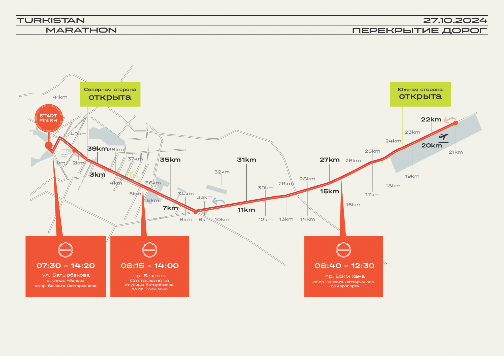 Таблица перекрытия дорог на «Turkistan Marathon 2024» (27.10.2024)