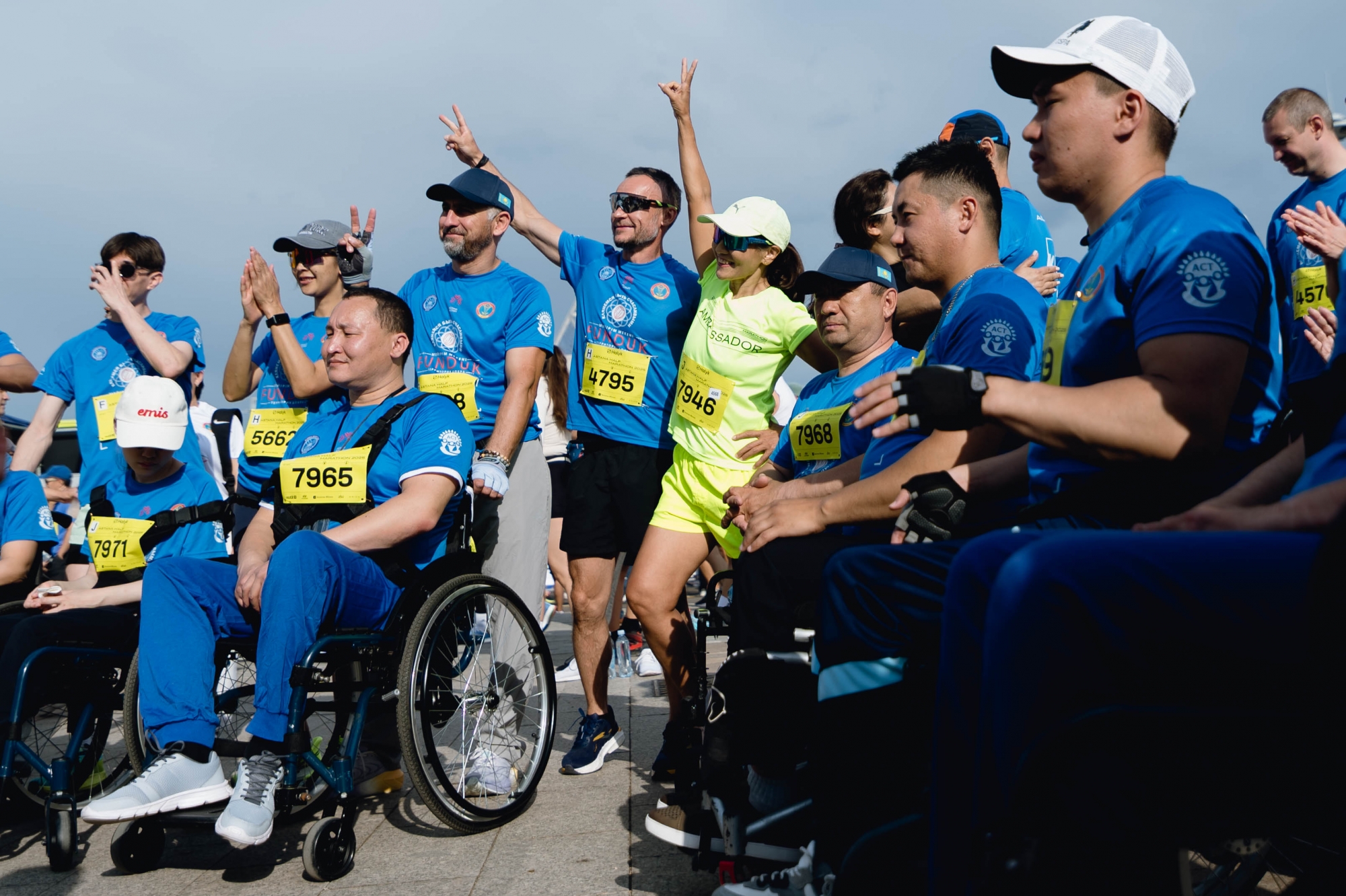 Среди финишеров и «инклюзивная команда» фонда Funduk из 40 участников — сильных казахстанцев с инвалидностью и неравнодушных бегунов с добрыми сердцами.