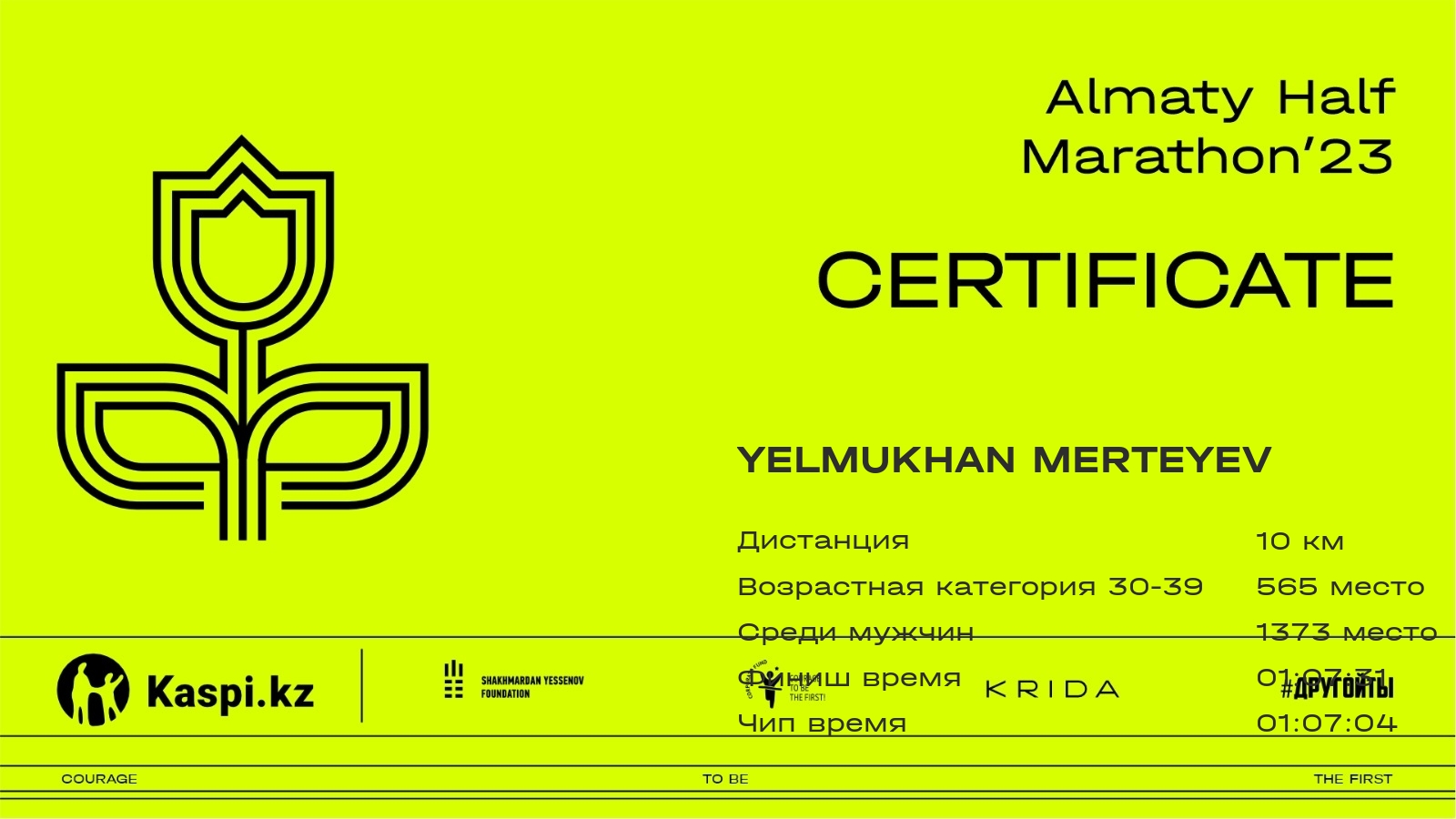 | 2010 | Yelmukhan Merteyev | ![]() | Almaty | 6464 | 00:43:37.29 | 01:07:31.47 | 01:07:04.19 | Скачать |
