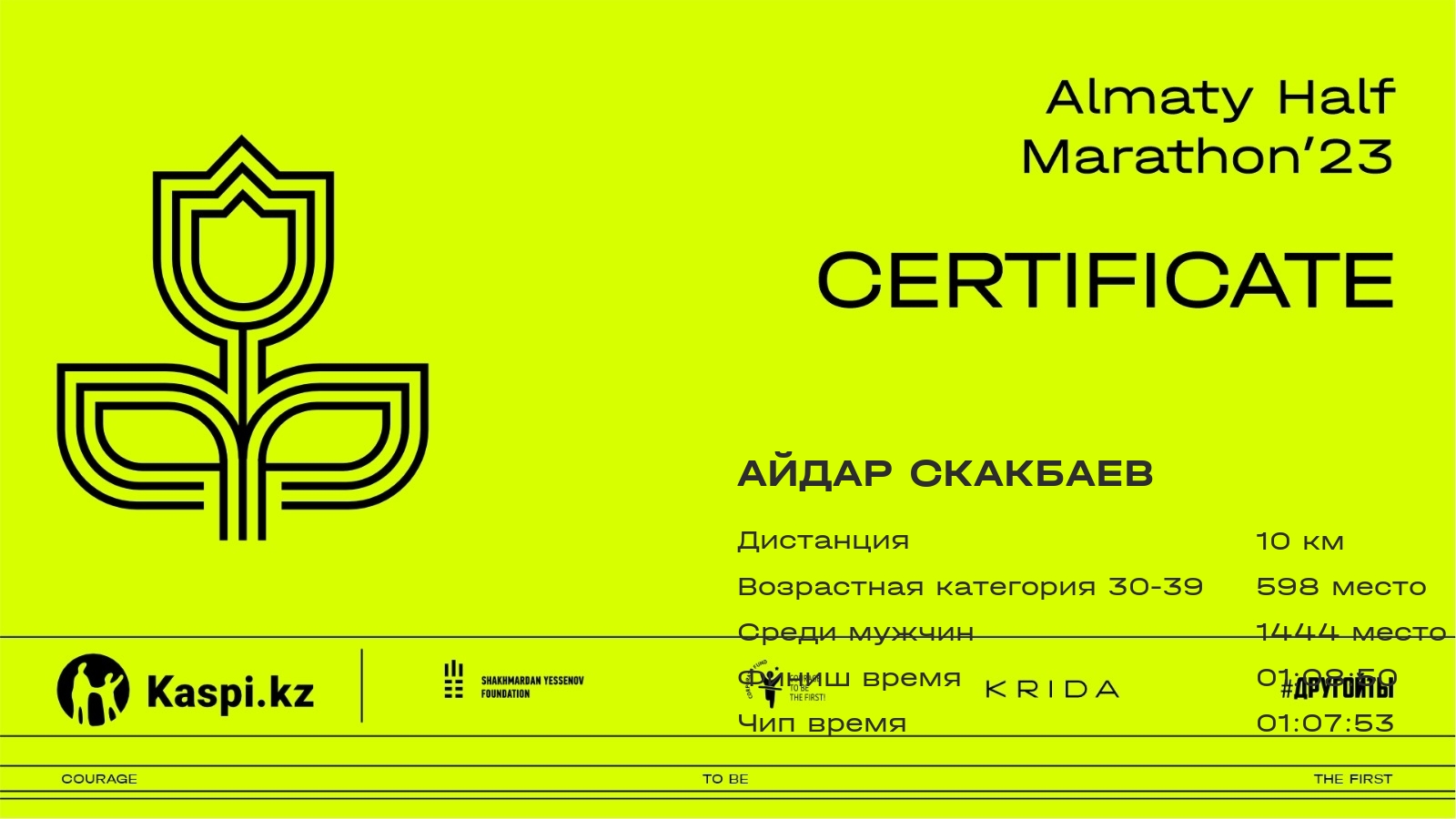 | 1872 | Sabyr Issakov | ![]() | Almaty | 6758 | 00:43:37.23 | 01:05:37.48 | 01:04:10.50 | Скачать |