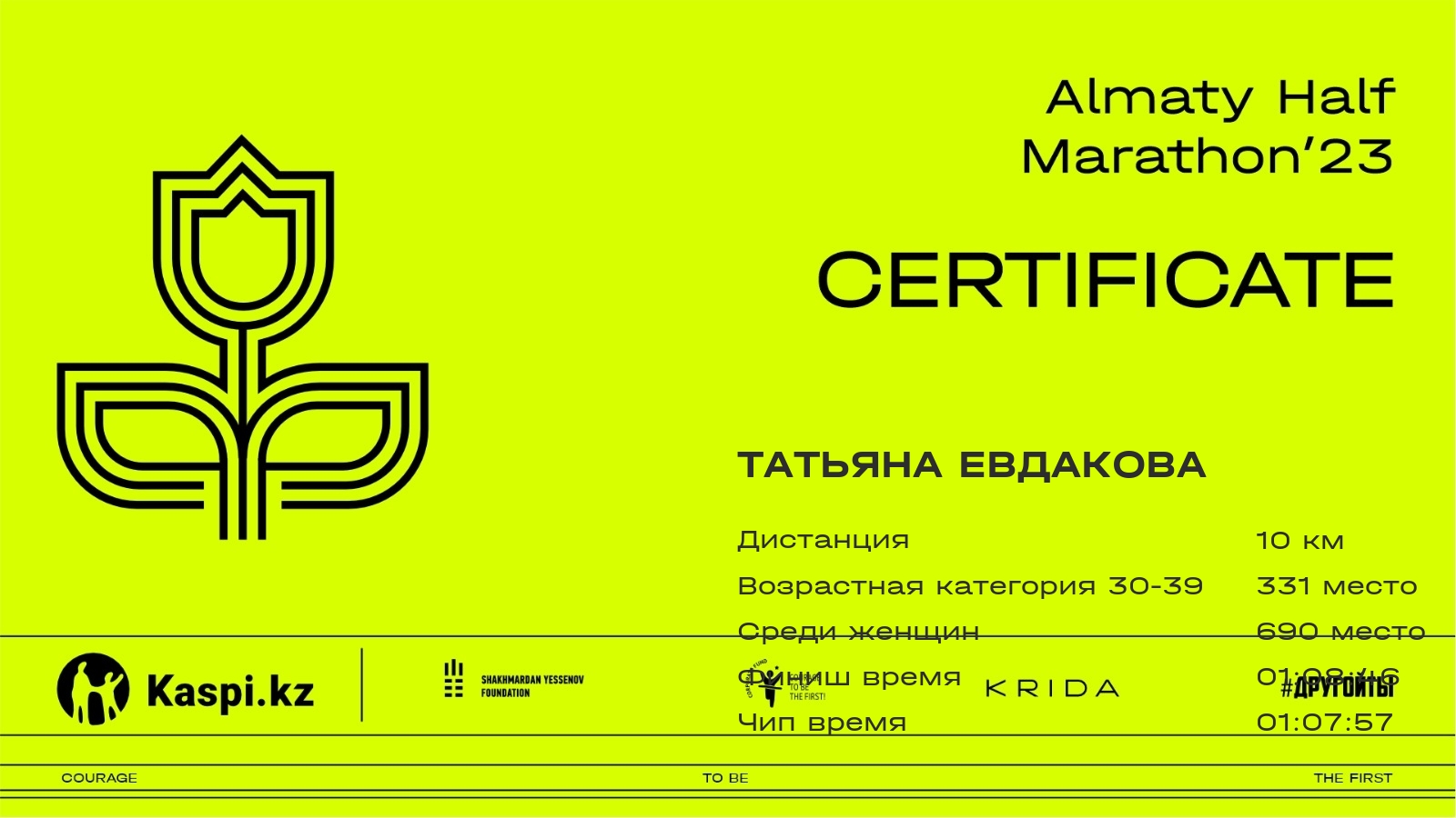 | 1711 | Татьяна Бердикулова | ![]() | Алматы | 4428 | 00:42:17.85 | 01:03:53.79 | 01:03:52.29 | Скачать |