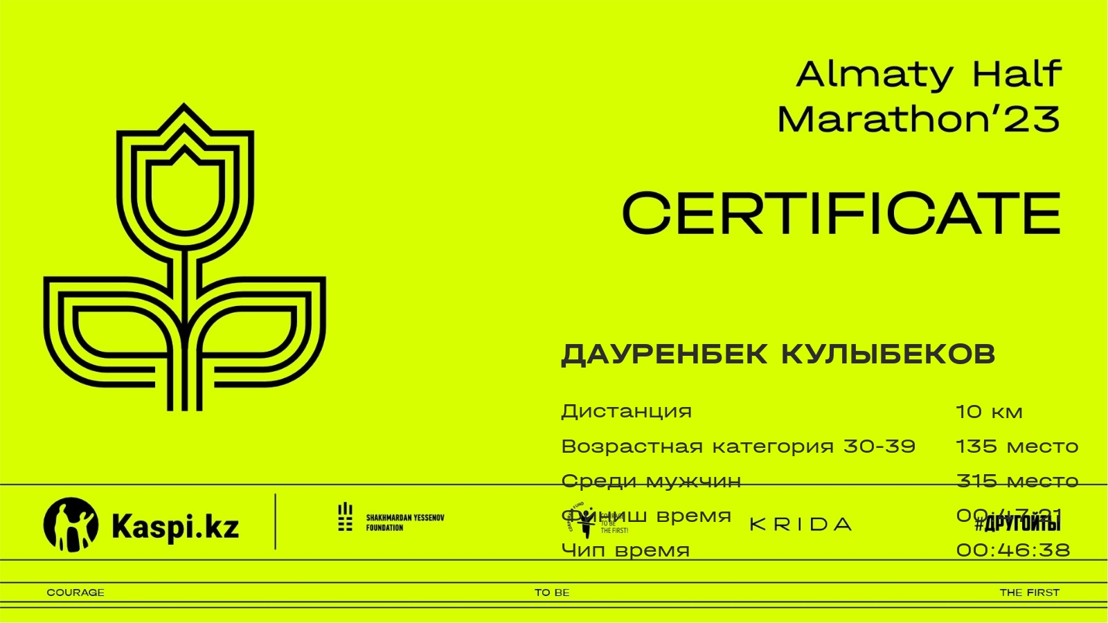 | 364 | Diana Omarova | ![]() | Алматы | 4426 | 00:32:46.38 | 00:47:11.00 | 00:46:38.94 | Скачать |