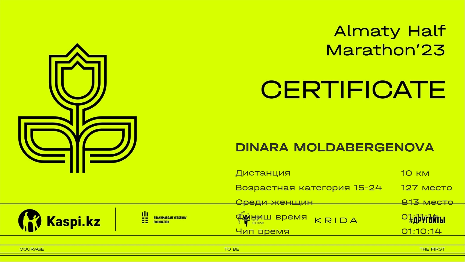 | 1852 | Dina Zhakanova | ![]() | Алматы | 4073 | 00:45:16.82 | 01:05:20.79 | 01:03:15.06 | Скачать |