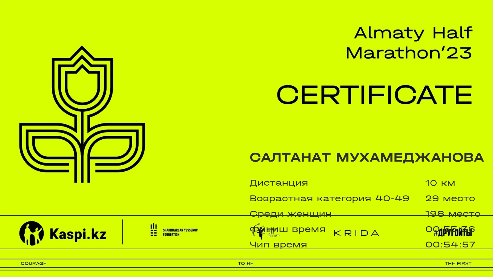 | 3354 | Самал Салимова | ![]() | Алматы | 3800 | 01:09:29.37 | 01:35:10.86 | 01:34:21.40 | Скачать |